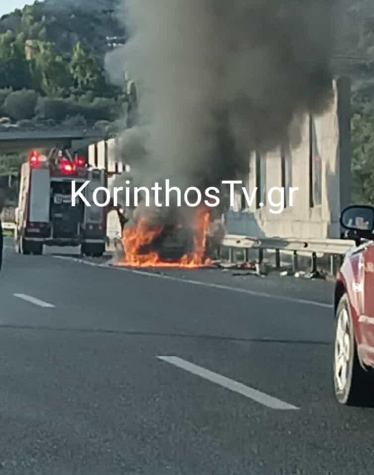 «Λαμπάδιασε» αυτοκίνητο εν κινήσει στην εθνική οδό Κορίνθου-Πατρών (φώτο)