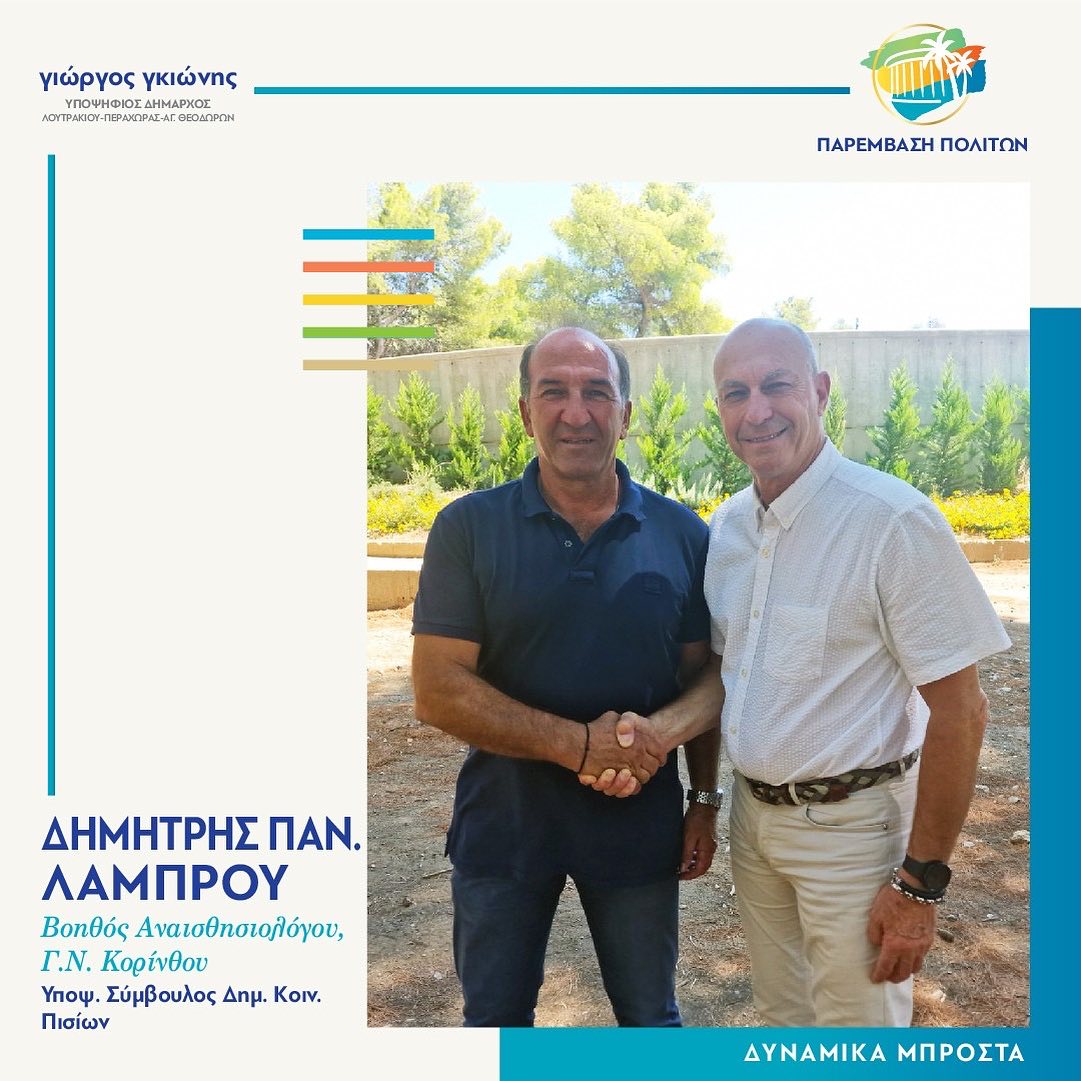 Εμπλουτίζουμε την ομάδα της 𝚷𝚨𝚸𝚬𝚳𝚩𝚨𝚺𝚮𝚺 𝚷𝚶𝚲𝚰𝚻𝛀𝚴 με μια NEA, δυνατή προσθήκη! Ένας έμπειρος και πετυχημένος αυτοδιοικητικός, ο Δημήτρης Π Λάμπρου μπαίνει αποφασιστικά και σε αυτόν τον προεκλογικό αγώνα για να συνεισφέρει στην υλοποίηση του μεγάλου έργου που επιτελείται.
