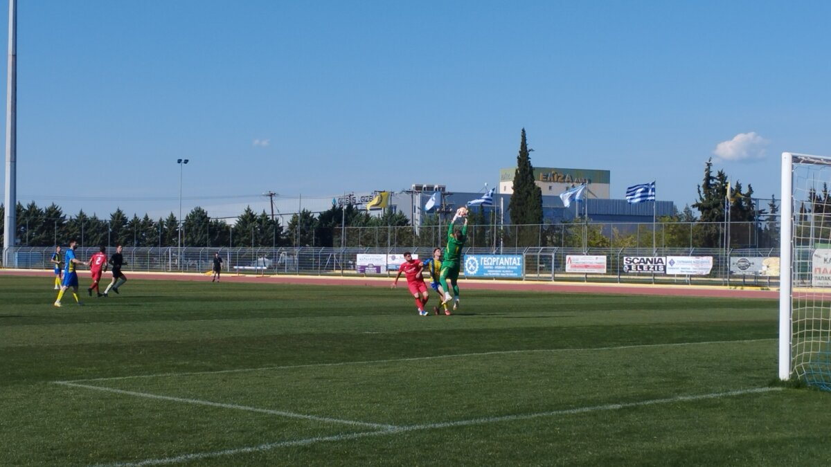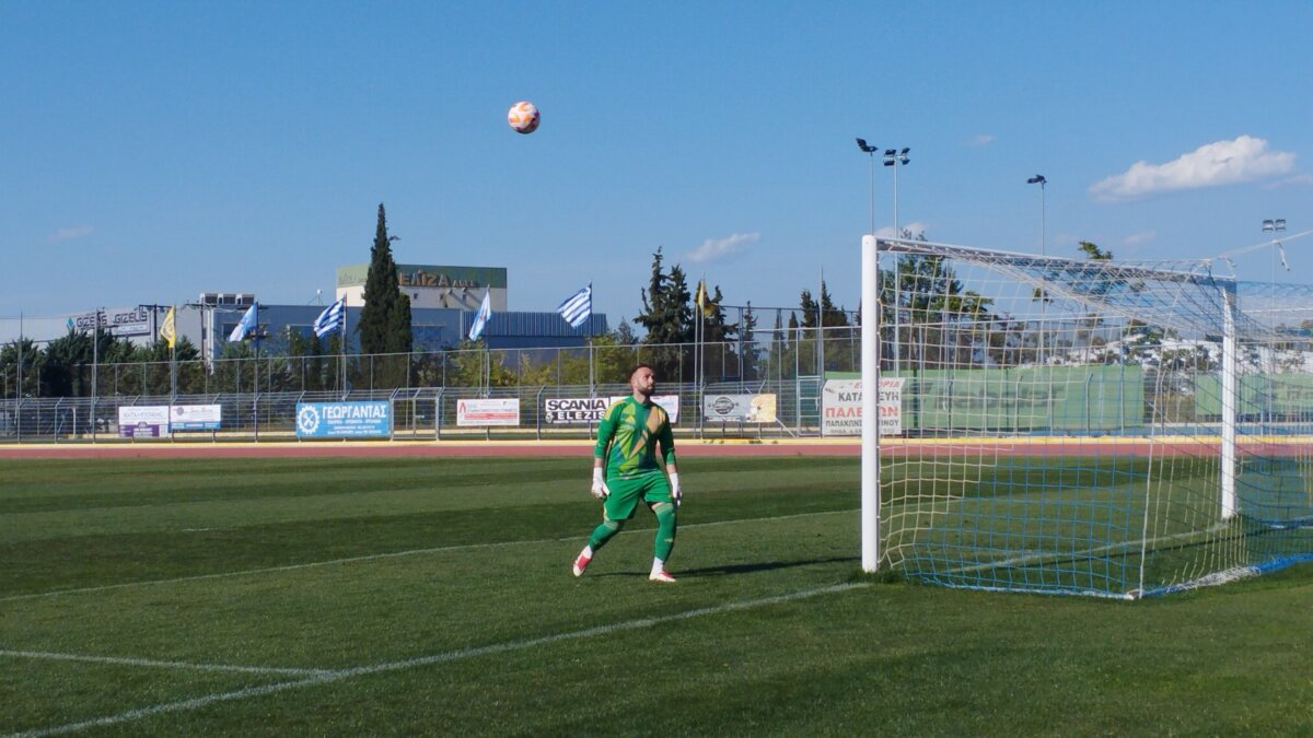 21′ κόρνερ για τον Πέλοπα από αριστερά, το σουτ από τον Ράπτη στο πρώτο δοκάρι, η μπάλα μόλις άουτ.