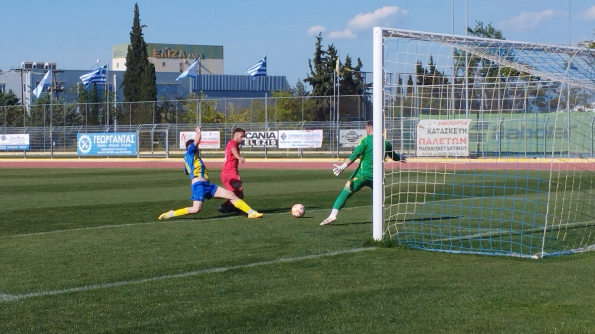 26’ ο Μπακομήτρος έκανε την ωραία κάθετη πάσα και έβγαλε τον Τσιγγέλη στην αντεπίθεση, αυτός προχώρησε, λίγο έξω από την περιοχή έκανε το σουτ, η μπάλα πέρασε μόλις πάνω από το τέρμα, άουτ.