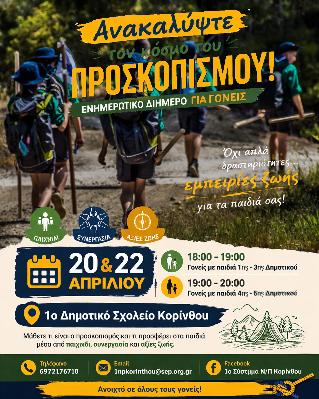 Ο προσκοπισμός αποτελεί μια διαχρονική παιδαγωγική κίνηση που συμβάλλει ουσιαστικά στη διαμόρφωση χαρακτήρων, μέσα από το παιχνίδι, τη συνεργασία, την υπευθυνότητα και την επαφή με τη φύση.Η δράση είναι ανοιχτή στο κοινό και η συμμετοχή είναι ελεύθερη.