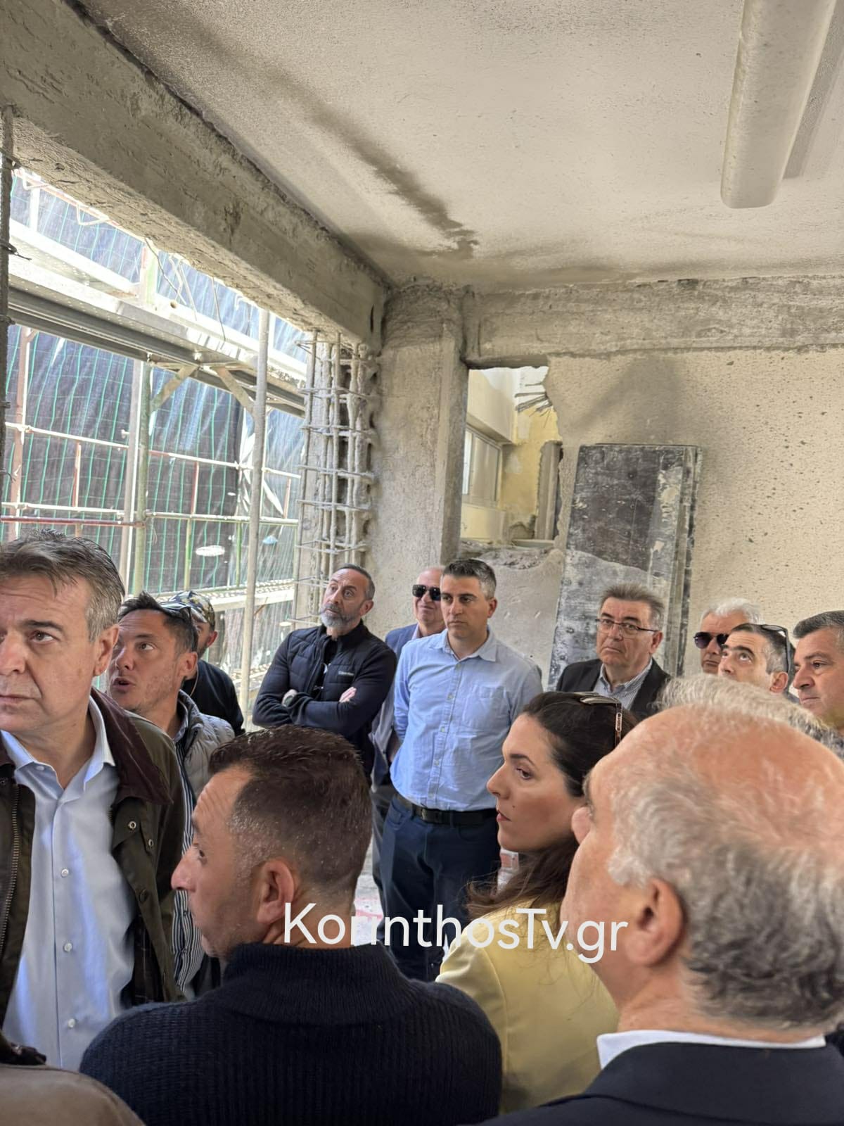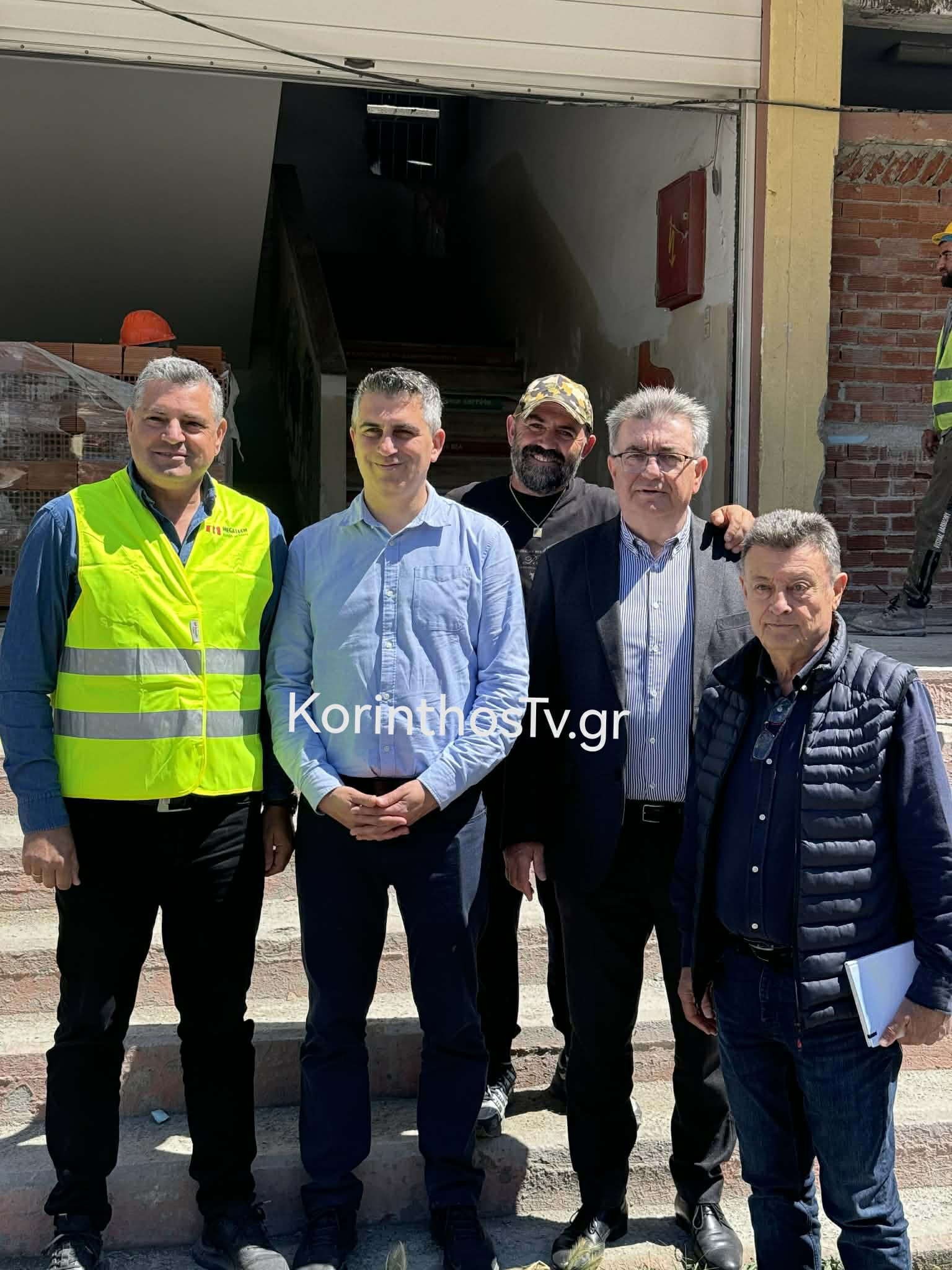 Κατά την επίσκεψη στο σχολείο, ο Δήμαρχος Κορινθίων Νίκος Σταυρέλης, μαζί με τον Υπουργό Υποδομών και Μεταφορών Χρίστο Δήμα, είχαν την ευκαιρία να διαπιστώσουν από κοντά την πρόοδο των παρεμβάσεων.