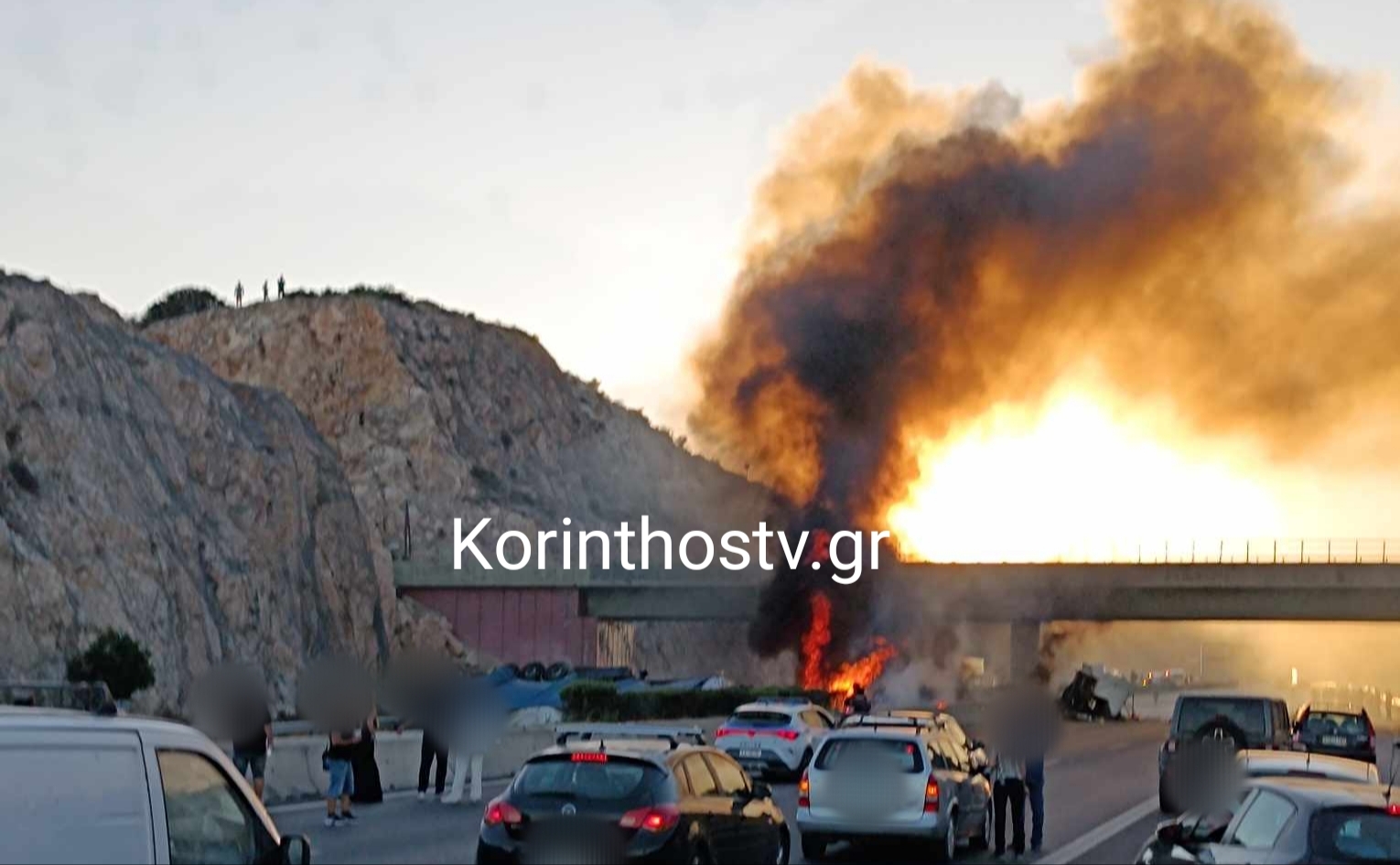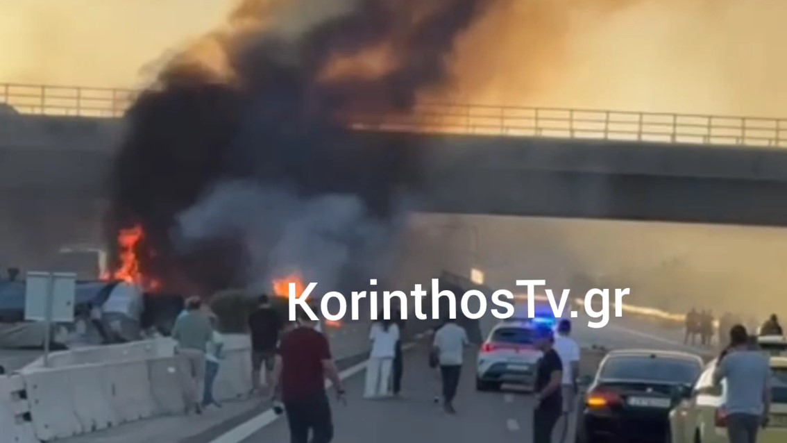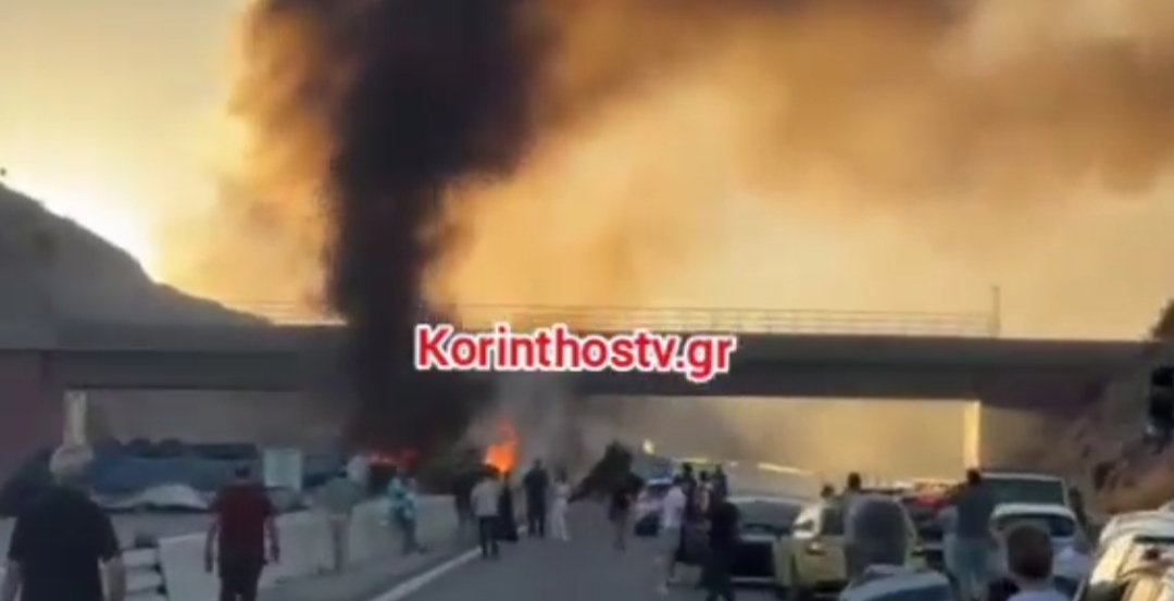 Στιγμές τρόμου στην Εθνική Αθηνών – Κορίνθου: Στις φλόγες τυλίχθηκε Νταλίκα.