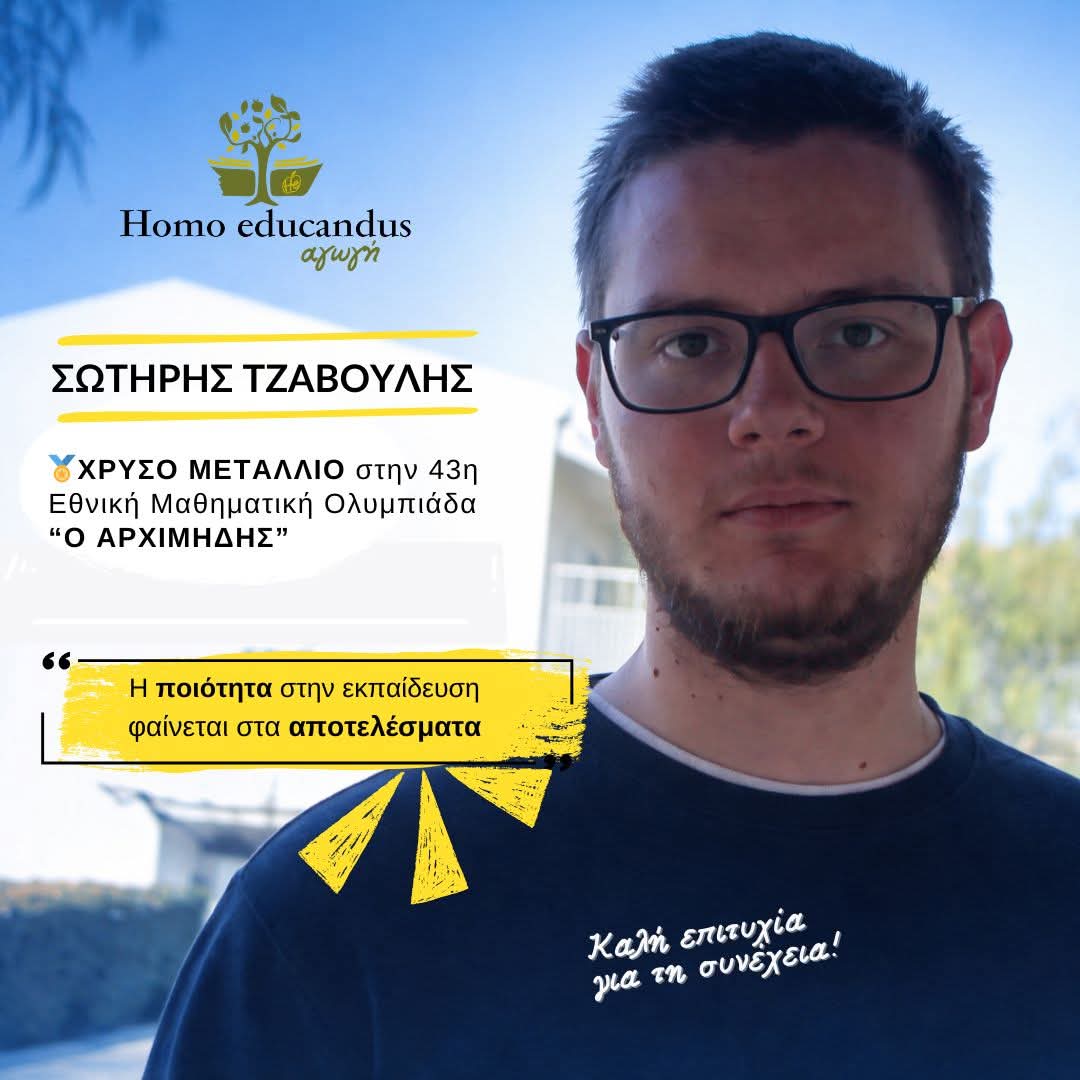 Ο μαθητής Σωτήρης Τζαβούλης κατέκτησε το Χρυσό Μετάλλιο στην Εθνική Μαθηματική Ολυμπιάδα «Αρχιμήδης», διακρινόμενος ανάμεσα στους κορυφαίους μαθητές της χώρας.