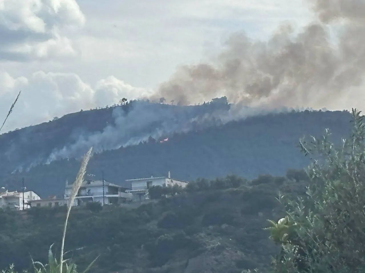 Η φωτιά στην Άμπελο Ακράτας όπως φαίνεται από την Παλαιά Εθνική Οδό και από την Ακράτα. Αρκετά σοβαρό περιστατικό, όπως μεταδίδεται από τις πυροσβεστικές δυνάμεις που έχουν σπεύσει στην περιοχή, καθώς η πυρκαγιά καίει δασική έκταση και επεκτείνεται γρήγορα λόγω των ανέμων.