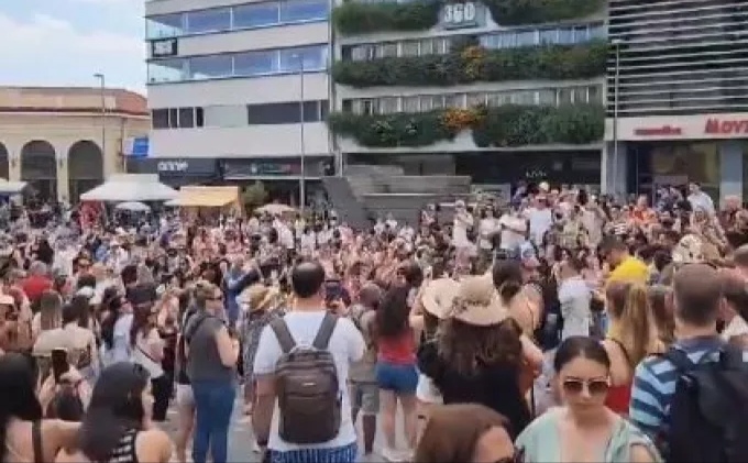 Στην Αθήνα, πλάνα από βίντεο δείχνουν δεκάδες Ισραηλινούς στην Πλατεία Μοναστηρακίου να πανηγυρίζουν την είδηση της απελευθέρωσης των ομήρων.