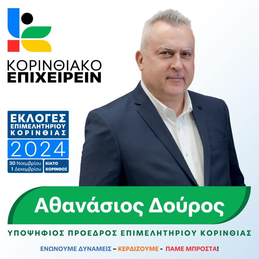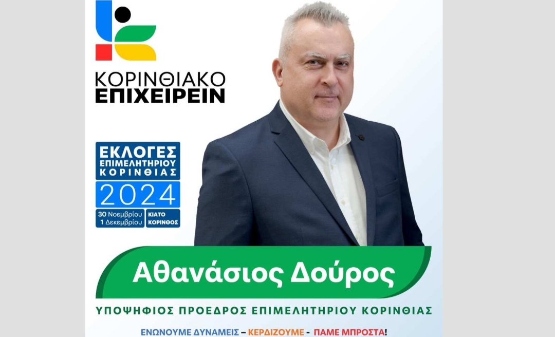 Με αίσθημα ευθύνης και αποφασιστικότητα, ανακοινώνουμε την υποψηφιότητα του συνδυασμού μας για το Επιμελητήριο Κορινθίας, με επικεφαλής και Υποψήφιο Πρόεδρο τον Αθανάσιο Δούρο.