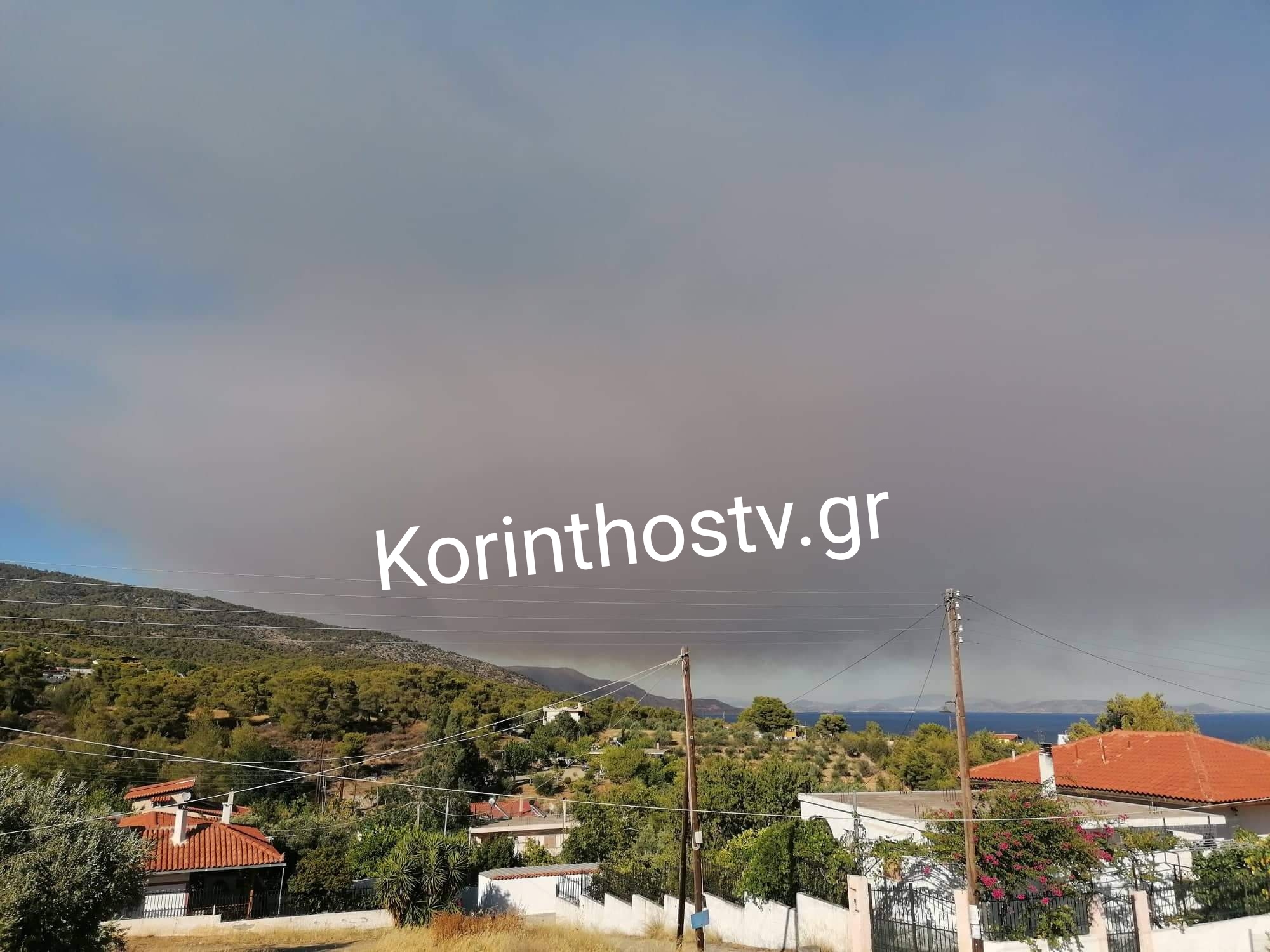 Οι πυκνό καπνοί είναι ορατοί και στην Κορινθία