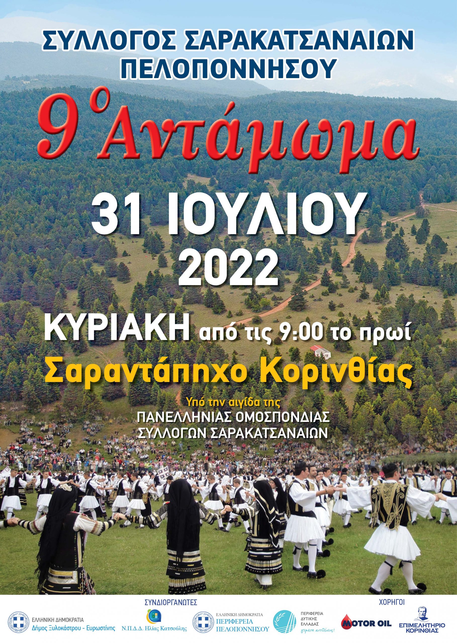 Την Κυριακή 31-07-2022 στο αισθητικό δάσος του Σαραντάπηχου του Δήμου Ξυλοκάστρου – Ευρωστίνης και από τις 9π.μ. λαμβάνει χώρα το 9ο ετήσιο Αντάμωμα του Συλλόγου Σαρακατσαναίων Πελοποννήσου.
