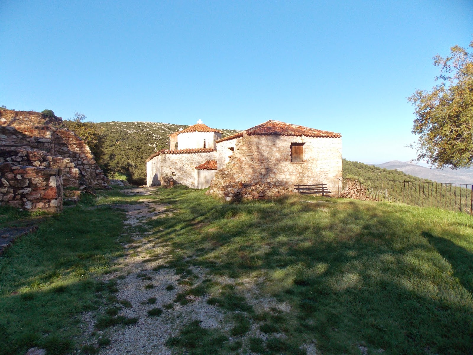 Η Παλαιά Μονή βρίσκεται σε μια μοναδική τοποθεσία, στην έξοδο βαθύτατου φαραγγιού, γύρω από την οποία διαγράφονται τα απότομα βουνά που φράζουν τις διαβάσεις προς την Κορινθία. Η ίδια φαίνεται σαν ισχυρότατο έρεισμα και φρουριακό συγκρότημα, όπως το ονομαστό φρουριακό απόρθητο βυζαντινό συγκρότημα του Αγιονορίου και η Ιερά Μονή του Βράχου της Νεμέας. Η πρώτη εντύπωση που δίνει η Μονή είναι πως πρόκειται για μνημείο ξεχωριστής σπουδαιότητας, μολονότι είναι πλέον έρημη και τα κτίσματά της έχουν μεταβληθεί σε ερείπια. Αν και η αρχική γραφική μορφή του τοπίου έχει μεταβληθεί, παραμένει αμετάβλητη η οχυρή και δυσπρόσιτη τοποθεσία όπου ιδρύθηκε η Μονή της Παναγίας. Θαυμάζει κανείς την οξύτατη αίσθηση των κτιτόρων για την άριστη επιλογή του χώρου, που εξασφάλιζε το απρόσβλητο αλλά και την ησυχία που πάντα επιδιώκουν οι μοναχοί. Όποιος βλέπει τη Μονή από κάτω έχει την εντύπωση ότι πρόκειται για ισχυρό προμαχώνα σφηνωμένο σε μια βραχώδη έκφυση σκληρού ορεινού εδάφους. Ο μοναστηριακός χώρος έχει πλήρη κάλυψη και προστασία από διαδοχικά ισχυρά πρόβουνα, κυρίως από τη νότια πλευρά, και απότομες χαράδρες. Πολύ ενδιαφέρουσα είναι η βόρεια πλευρά του μοναστηριού, όπου στο βάθος του ορίζοντα υψώνεται ο όγκος του Ακροκόρινθου. Ευρύς είναι ο σημερινός ερειπιώνας που βρίσκεται στη νότια πλευρά του μνημείου. Τα κτιριακά συγκροτήματα καταλάμβαναν το καταλληλότερο επίπεδο μέρος στην πλέον ομαλή πλευρά των υψωμάτων. Εκεί, αμφιθεατρικά, κτίστηκαν τα κελιά και οι ξενώνες. Ένα θολογύριστο κελί με τζάκι έχει περισωθεί στο κέντρο των ερειπωμένων κτισμάτων. Στη νοτιοανατολική πλευρά του χώρου έχει δημιουργηθεί πλατεία, που με σύγχρονη επιμέλεια εξασφαλίζει σκιά από καλλωπιστικά δέντρα και καρυδιές. Ένα χριστιανικό μνημείο φρουριακό και με τόση περιουσία είναι δυνατό να υφίστατο επιδρομές πειρατών. Ήταν λοιπόν εδώ ένα μοναστήρι της υστεροβυζαντινής περιόδου, φρουριακής κατασκευής, με ιστορική δράση, με πολυμελή αδελφότητα και με μεγάλη περιουσία.