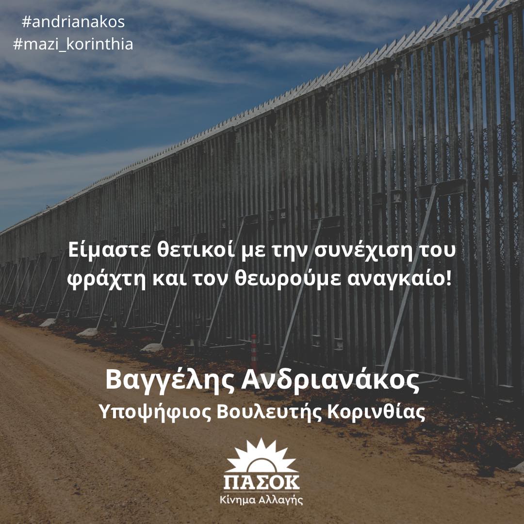 Δήλωση του Βαγγέλη Ανδριανάκου, υποψηφίου βουλευτή Κορινθίας με το ΠΑΣΟΚ-ΚΙΝΑΛ, για τον φράχτη του Έβρου