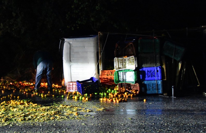 Ένα αγροτικό αυτοκίνητο που μετέφερε κλούβες με πορτοκάλια το απόγευμα της Τρίτης 28 Νοεμβρίου, εξετράπη της πορείας του και ανετράπη στην Π.Ε.Ο. Κορίνθου – Άργους στο ύψος των Δερβενακίων.