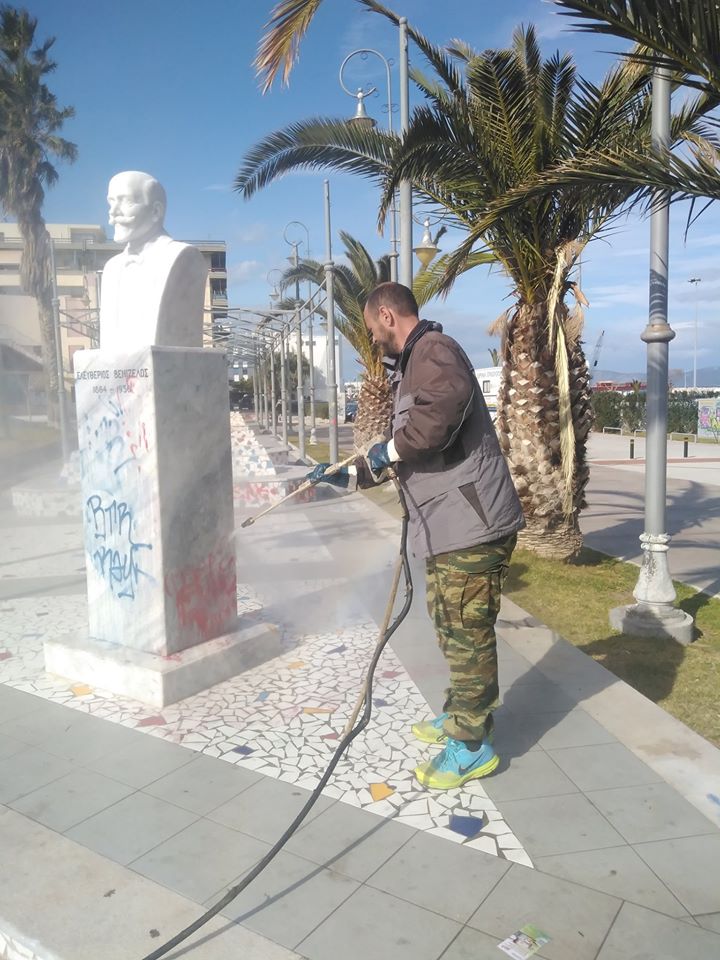 Έπειτα από την βάναυση και προσβλητική ενέργεια αγνώστων κατά της Ιστορίας & του αγάλματος του μεγάλου Ελληνα Πρωθυπουργού Ε. Βενιζέλου στην Κόρινθο, πραγματοποιήθηκε ο καθαρισμός του, και το άγαλμα επανήλθε στην αρχική του κατάσταση.