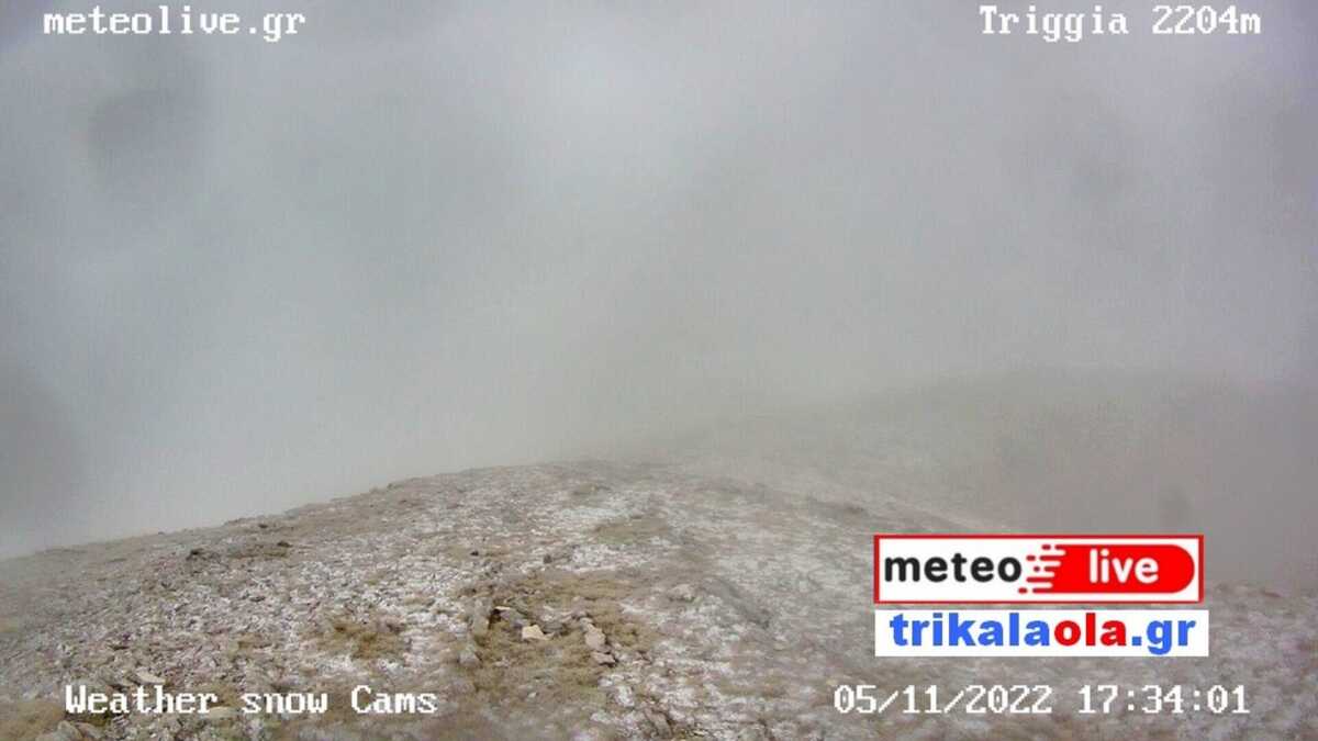Στην κορυφή Τριγγία (2.204 μ. υψόμετρο) Κλεινοβού Καλαμπάκας στον νομό Τρικάλων, η κακοκαιρία έφερε και χιόνια, τα οποία «πασπάλισαν» το βουνό.