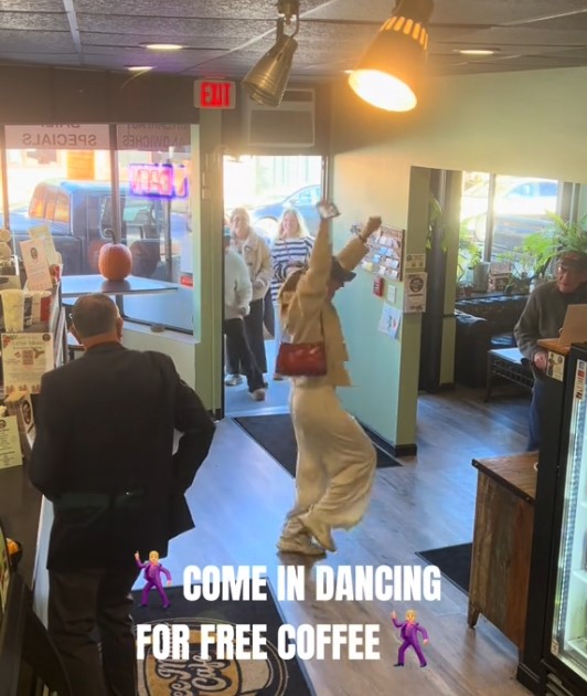 @coffeemilanocafe Dancing is good for the soul.. and a free coffee! This made our day! Thank you! #dancing #freedrinks #cafe #coffeeshop #event #fyp #restaurantlife #baristalife #barista #coffee #coffeetime #dancechallenge #viral ♬ original sound – Christina Dean