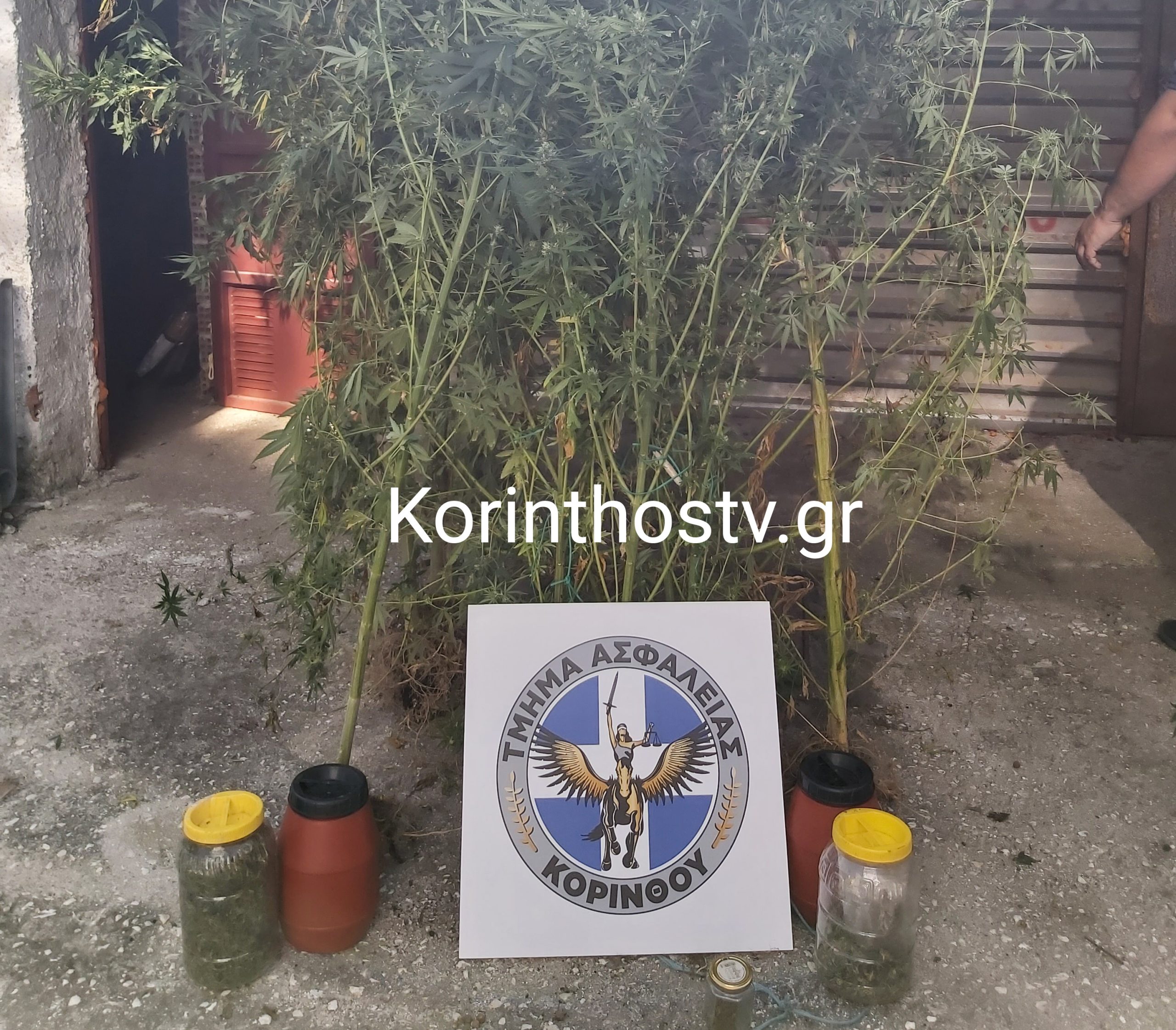 Επιπλέον, σε αύλειο χώρο της οικίας διαπιστώθηκε να καλλιεργεί -8- δενδρύλλια κάνναβης, ύψους έως -3,05- μέτρων, περίπου, τα οποία εκριζώθηκαν και κατασχέθηκαν.