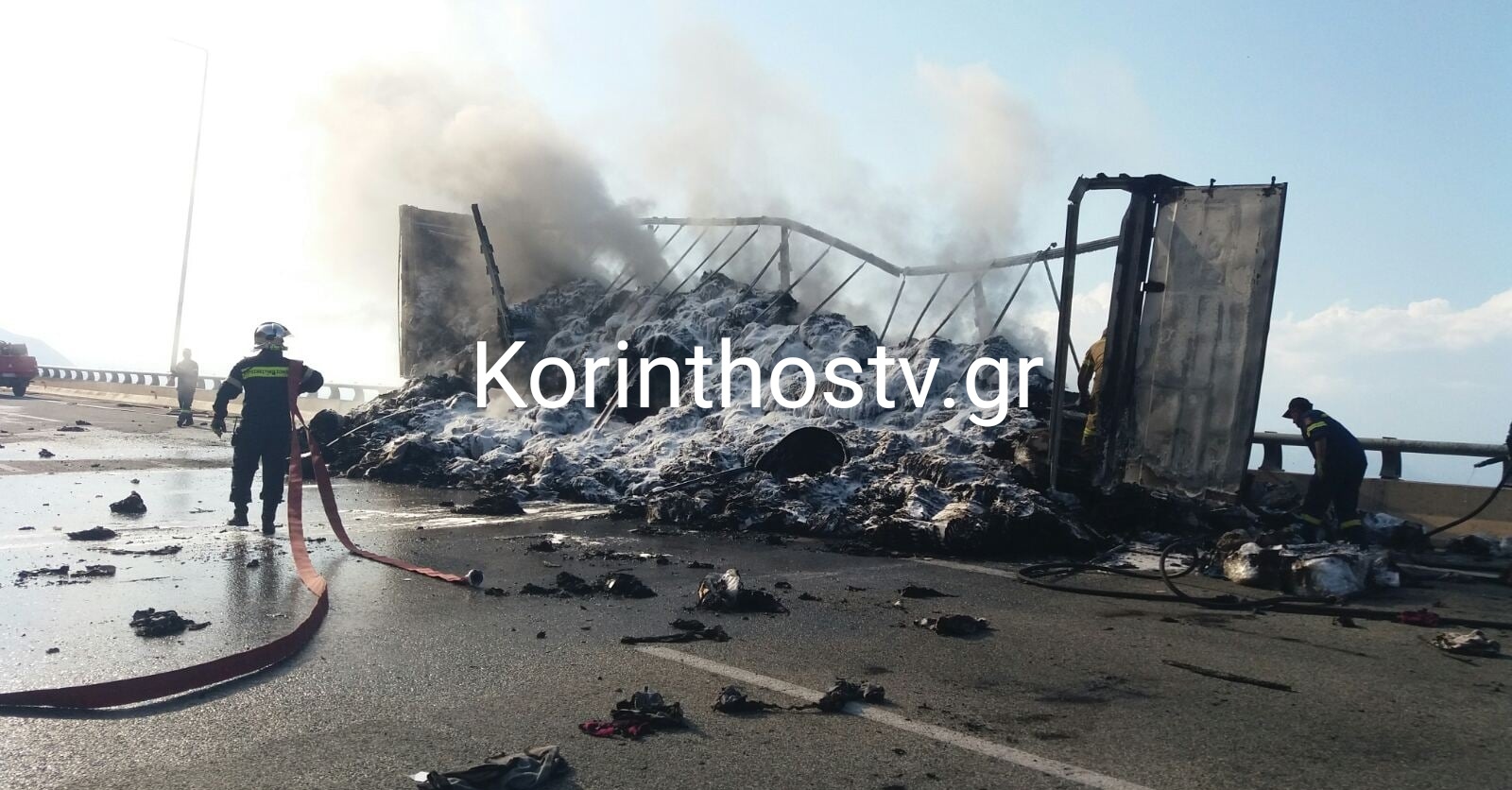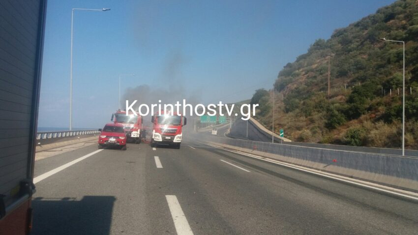 Νταλίκα πήρε φωτιά εν κινήσει στο 160χλμ στον αυτοκινητόδρομο Κορίνθου – Πατρών, στον κόμβο Διακοπτού, στο ρεύμα προς Πάτρα, το απόγευμα της Δευτέρας 5 Αυγούστου