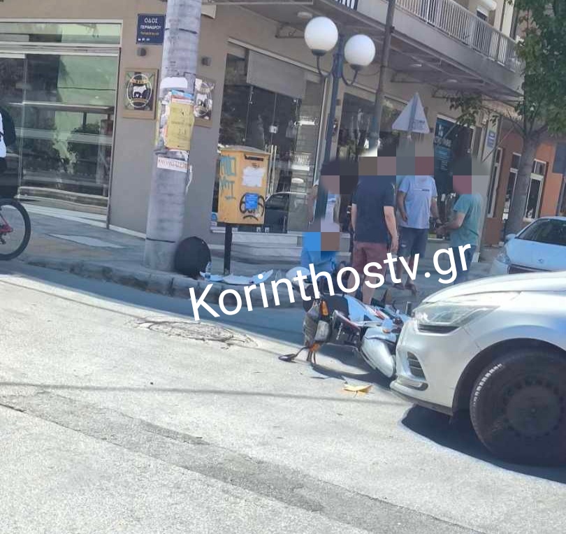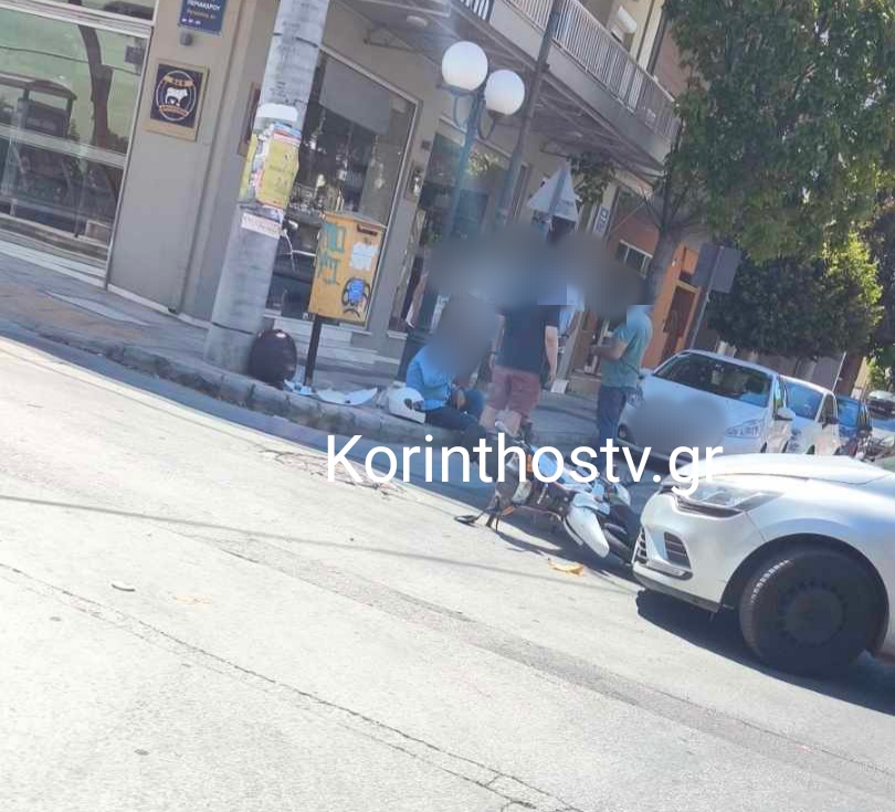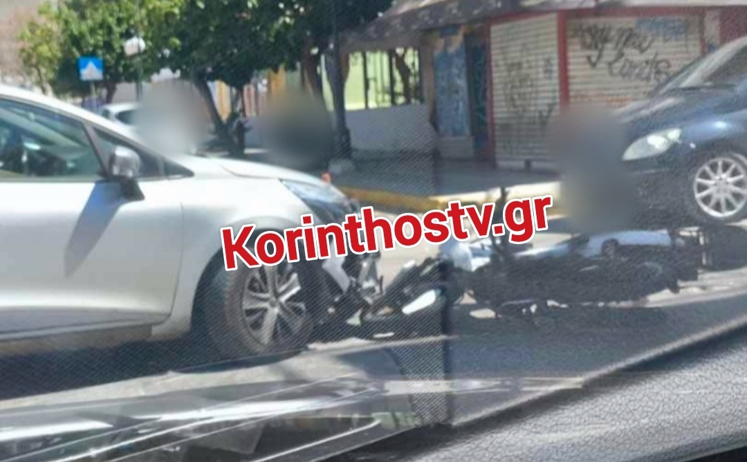 Τροχαίο ατύχημα σημειώθηκε το μεσημέρι της Κυριακής 30/6 στη συμβολή των οδών Γεωργίου Παπανδρέου και Περιάνδρου, στην Κόρινθο, όταν ένα Ι.Χ αυτοκίνητο συγκρούστηκε με μηχανάκι, σύμφωνα με το Korinthostv.gr