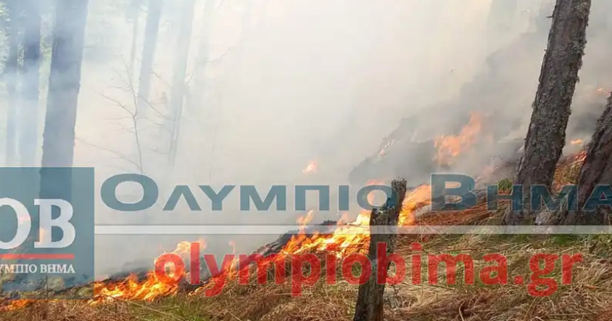 Εξακολουθεί να μαίνεται η φωτιά που ξέσπασε χθες στα Πιέρια όρη.