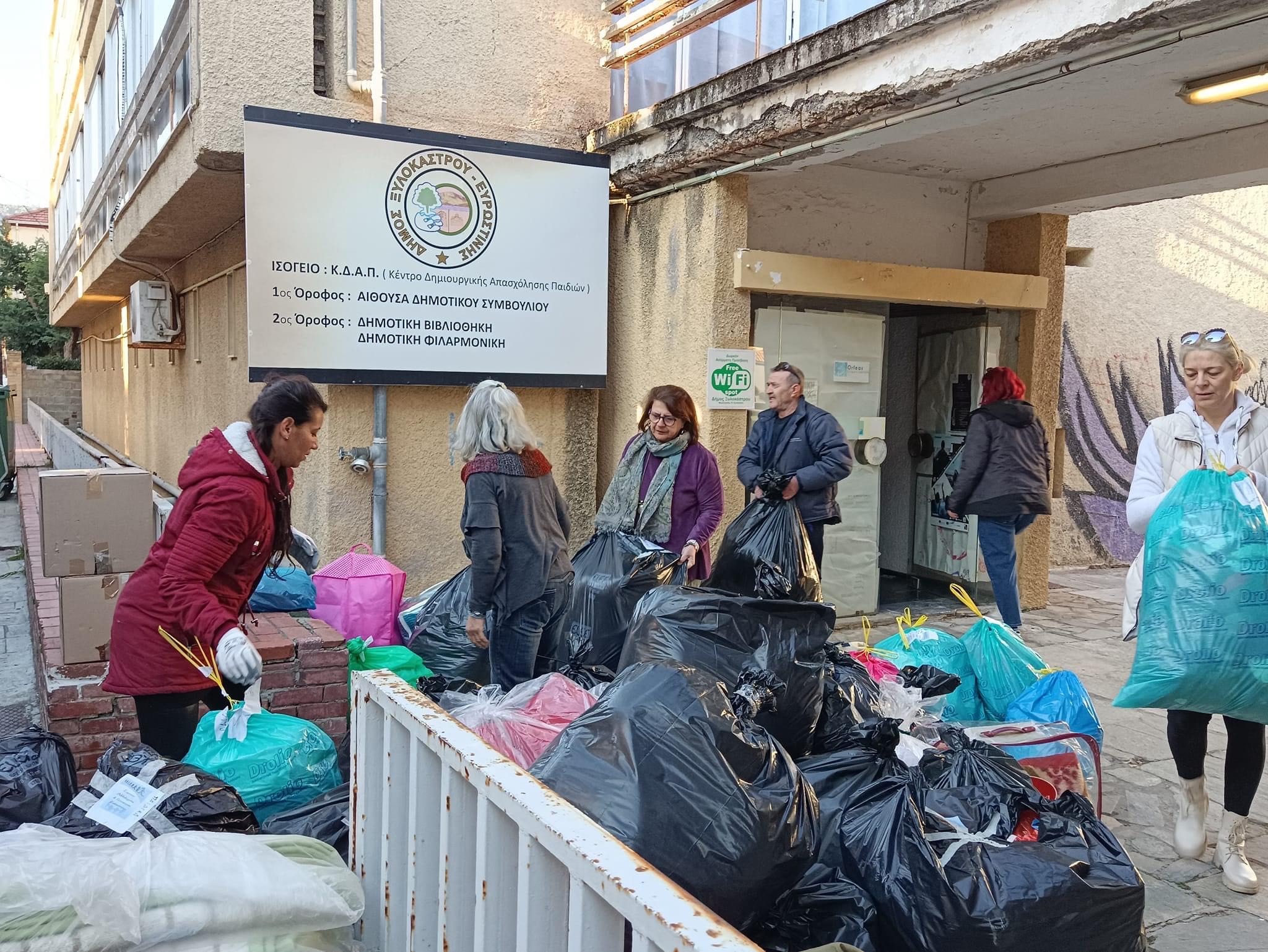 Συγκεντρώθηκε στο ισόγειο του Κέντρου Νεότητας Ξυλοκάστρου μεγάλος όγκος ειδών πρώτης ανάγκης, ο οποίος διαχωρίστηκε και συσκευάστηκε από εθελοντές και εθελόντριες του Orfeas organisation.