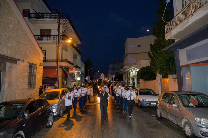 Συμμετείχαν εκπρόσωποι των τοπικών αρχών, συλλόγων και φορέων, ενώ η περιφορά της εικόνας πραγματοποιήθηκε με ευλάβεια, συνοδεία της Φιλαρμονικής και τιμητικού αγήματος.