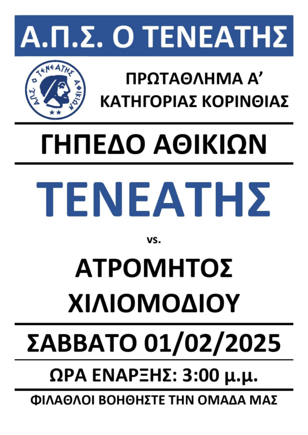 Το Σάββατο 1 Φεβρουαρίου και ώρα 3 μ.μ. υποδέχονται στο γήπεδο Αθικίων τον Ατρόμητο Χιλιομοδίου.