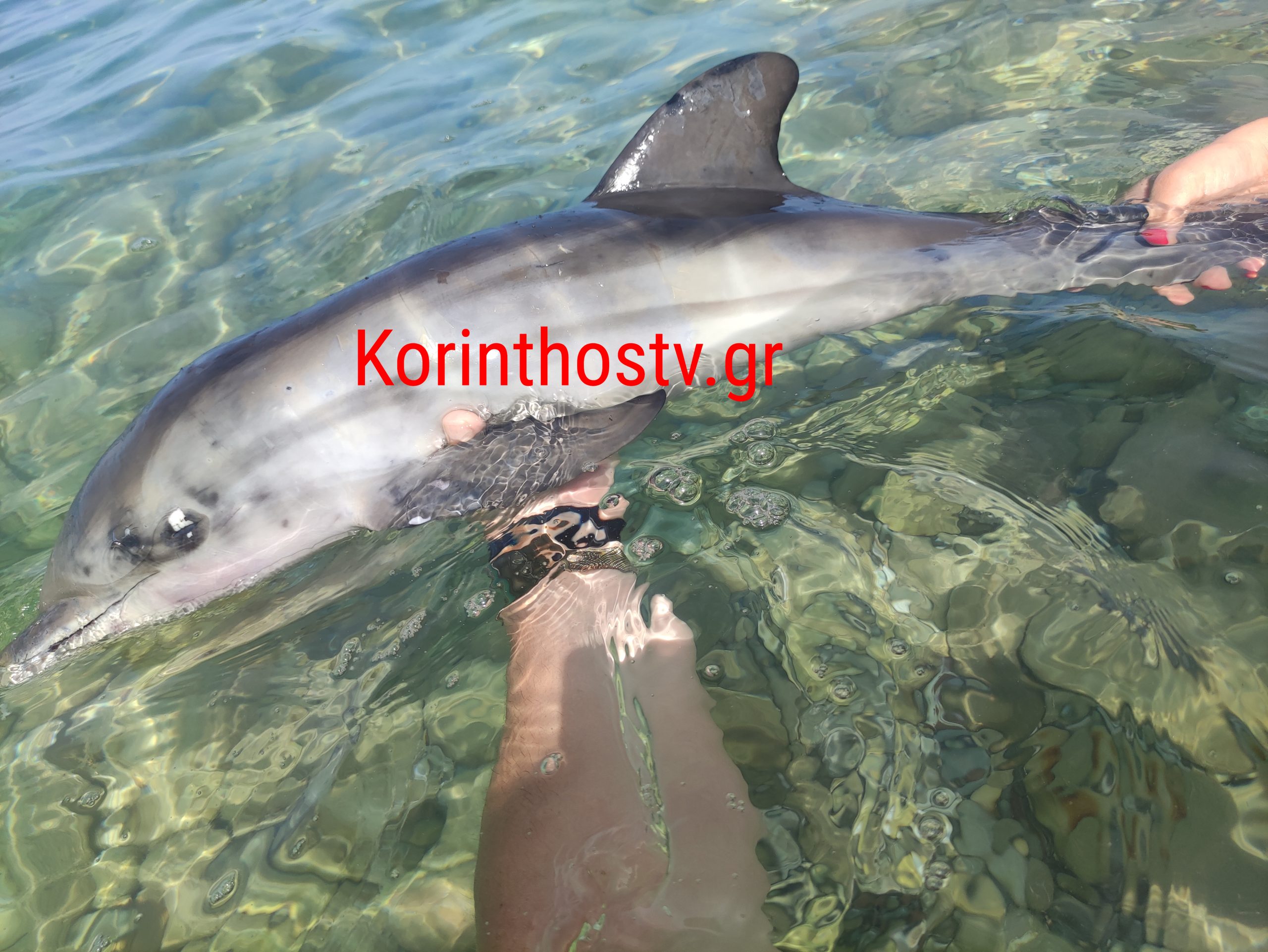 Ένα μικρό δελφίνι έβγαλαν από τη θάλασσα το απόγευμα του Σαββάτου, λουόμενοι στην παραλία στο Καμάρι Ξυλοκάστρου.