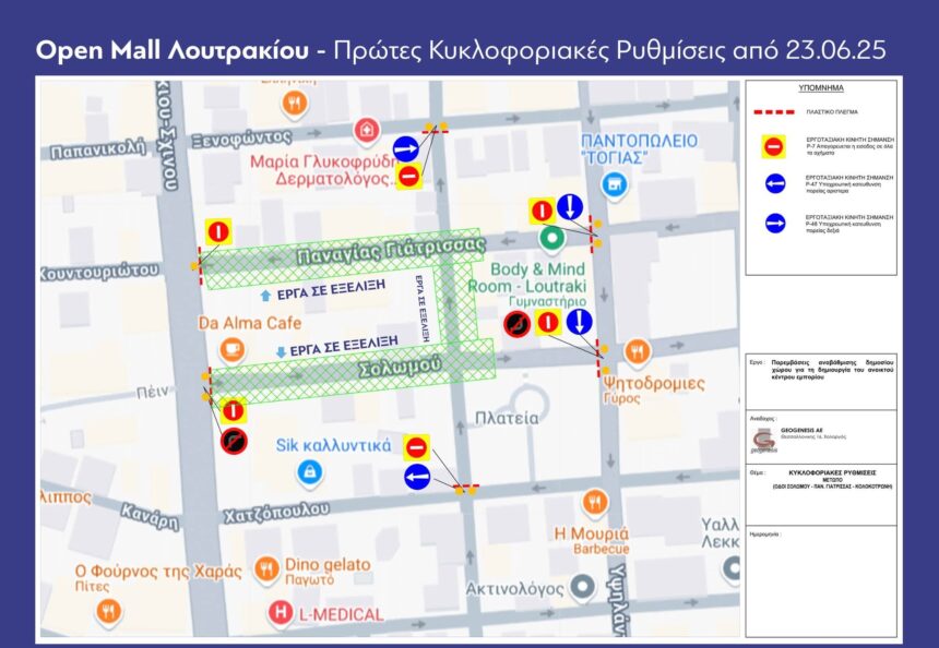 Ξεκινούν οι εργασίες για το 𝗢𝗽𝗲𝗻 𝗠𝗮𝗹𝗹 Λουτρακίου – Αλλάζει η εικόνα του εμπορικού μας κέντρου.Ο Δήμος Λουτρακίου – Περαχώρας – Αγίων Θεοδώρων ανακοινώνει ότι τη Δευτέρα 23 Ιουνίου 2025 ξεκινούν οι πρώτες εργασίες για το «Ανοικτό Κέντρο Εμπορίου Λουτρακίου (Open Mall)», ένα έργο που έχει στόχο την αισθητική και λειτουργική αναβάθμιση του εμπορικού κέντρου της πόλης του Λουτρακίου.
