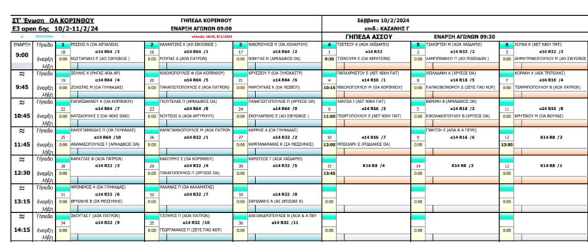 Οι αγώνες θα ξεκινήσουν το Σάββατο 10/02/2024. Συγκεκριμένα στο Δημοτικό Αθλητικό Κέντρο Κορίνθου από τις 9.00πμ το πρωί θα διεξάγονται οι αγώνες των αγοριών, ενώ στις εγκαταστάσεις του Ace Tennis Padel Academy στον Άσσο από της 09.30πμ το πρωί θα διεξαχθούν οι αγώνες των κοριτσιών.