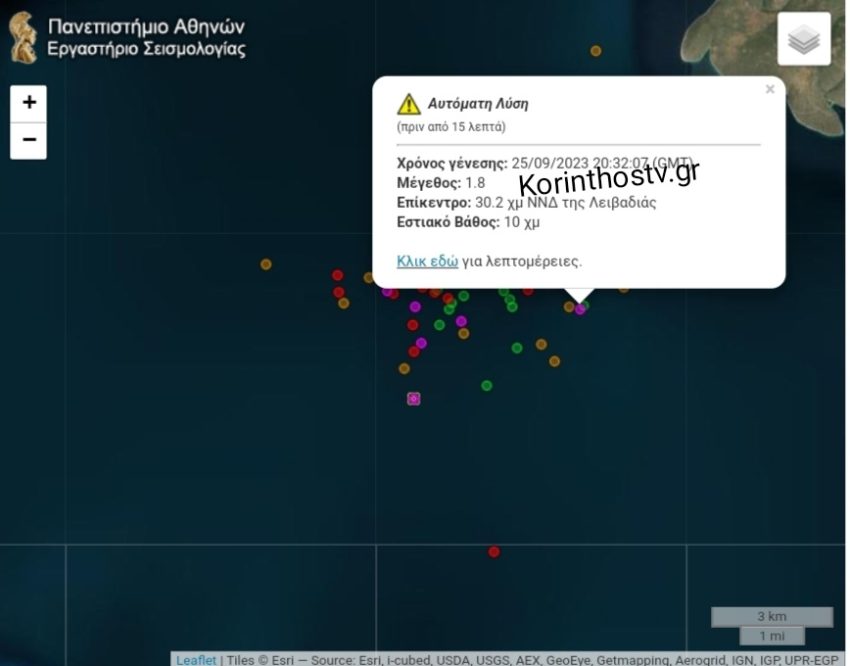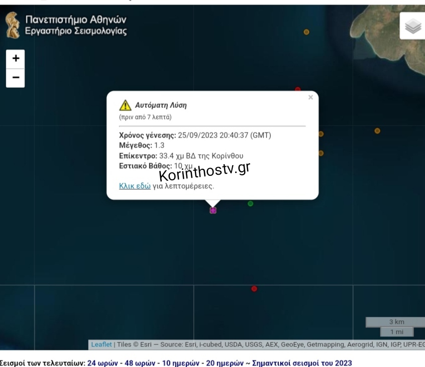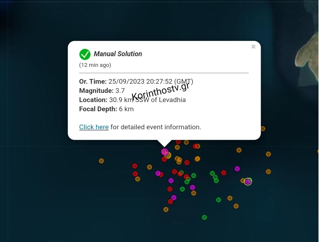 Νέα σεισμική δόνηση σημειώθηκε στη θαλάσσια περιοχή ανοιχτά του Ξυλοκάστρου στις 23:27 τη Δευτέρα 25/09.