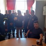 Στο σημείο έσπευσε όχημα της Πυροσβεστικής Υπηρεσίας Μεγάρων για να απεγκλωβίσουν τον οδηγό του πρώτου φορτηγού.