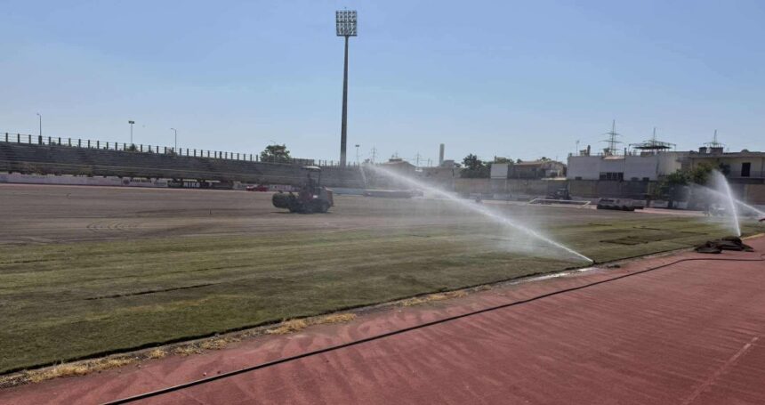Ήδη, τα αποστραγγιστικά έργα ολοκληρώθηκαν. Επίσης, ολοκληρώθηκαν και τα αρδευτικά, με χρήση νερού άρδευσης από τη γεώτρηση του σταδίου. (…) Η παράδοση του σύγχρονου τάπητα, θα γίνει νωρίτερα απ’ τον αρχικό χρόνο της 1ης Σεπτεμβρίου 2025”, λέει με ανάρτησή του, ο δήμαρχος Νίκος Σταυρέλης.