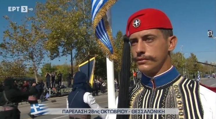 Τα βλέμματα όμως, εκτός από τις Ένοπλες Δυνάμεις και τα Σώματα Ασφαλείας, τράβηξε και ένας συγκινημένος Εύζωνας της Προεδρικής Φρουράς που συμμετείχε στην στρατιωτική παρέλαση για την εθνική επέτειο της 28ης Οκτωβρίου 1940, στην Θεσσαλονίκη.