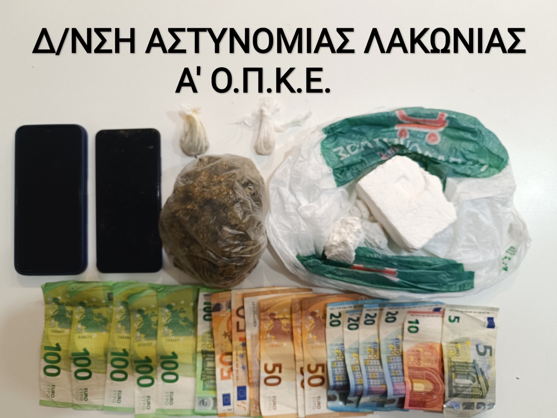 Ειδικότερα, σε γενόμενο αστυνομικό έλεγχο κατελήφθησαν να έχουν στην κατοχή τους ποσότητα κοκαΐνης, συνολικού βάρους -217- γραμμαρίων, ποσότητα κάνναβης, συνολικού βάρους -56,39- γραμμαρίων, μικροποσότητα MDMA (έκσταση), το χρηματικό ποσό των -995- ευρώ, προερχόμενο από την τέλεση αξιόποινων πράξεων, καθώς και -2- κινητά τηλέφωνα, τα οποία κατασχέθηκαν.