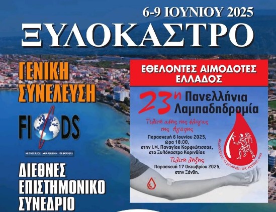 Ο Δήμος Ξυλοκάστρου – Ευρωστίνης έχει την ύψιστη τιμή και χαρά να φιλοξενεί ένα παγκόσμιο γεγονός ανθρωπιάς και προσφοράς, το Παγκόσμιο Συνέδριο Εθελοντικής Αιμοδοσίας, της Παγκόσμιας Ομοσπονδίας Οργανισμών Εθελοντικής Αιμοδοσίας (FIODS/IFBDO), από τις 6 έως τις 9 Ιουνίου 2025, στο Ξυλόκαστρο.