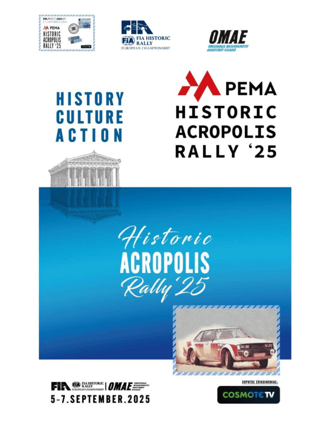Το PEMA Ιστορικό Ράλλυ Ακρόπολις έρχεται από τις 5 έως τις 7 Σεπτεμβρίου με 13 Ειδικές Διαδρομές. Χορηγός ονομασίας του φετινού Ιστορικού Ράλλυ Ακρόπολις είναι η εταιρεία PEMA.