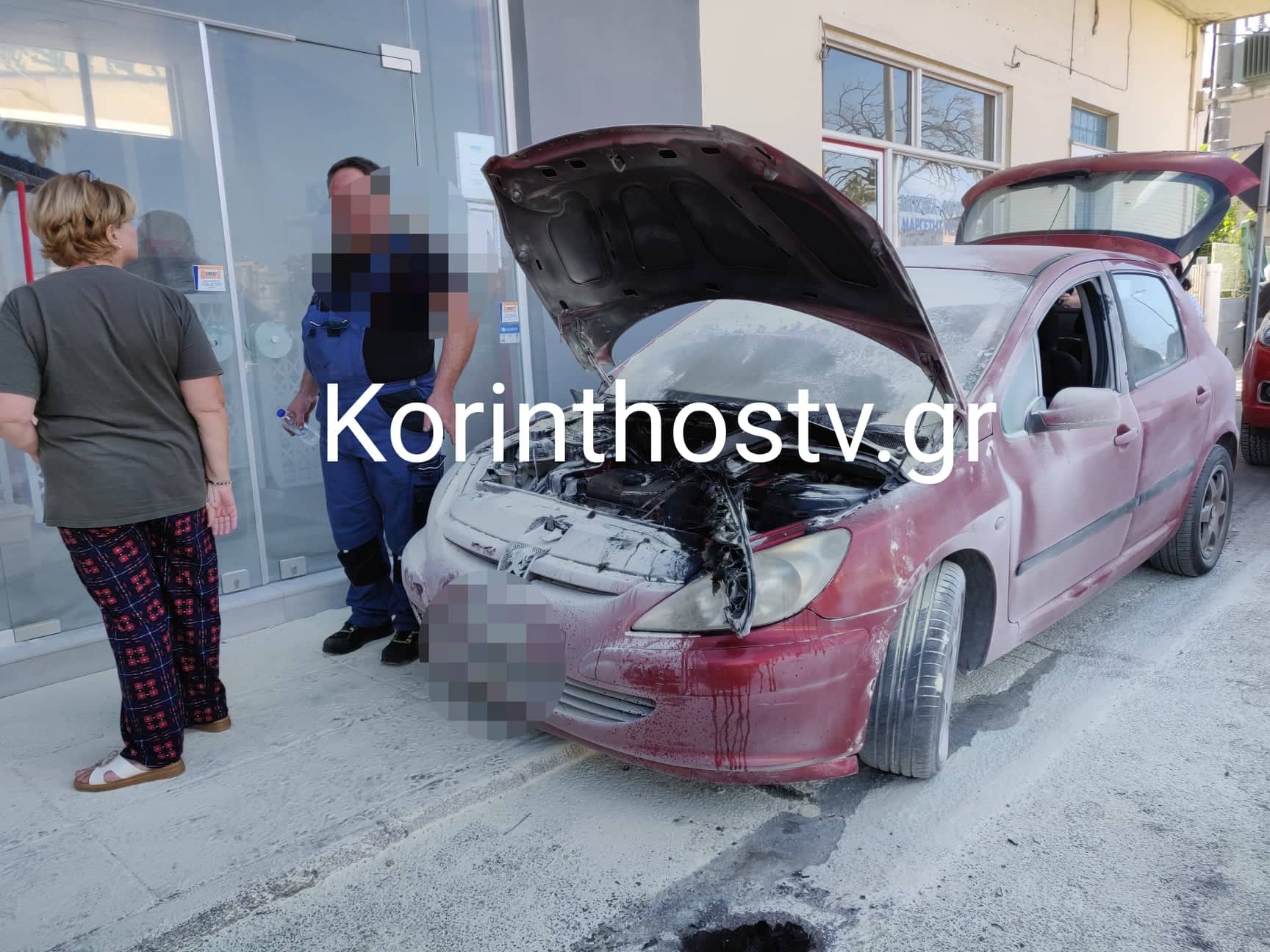 Αυτοκίνητο με τρεις επιβαίνοντες που κινείτο στη Λ. Αθηνών στην Κόρινθο ξαφνικά άρπαξε φωτιά.