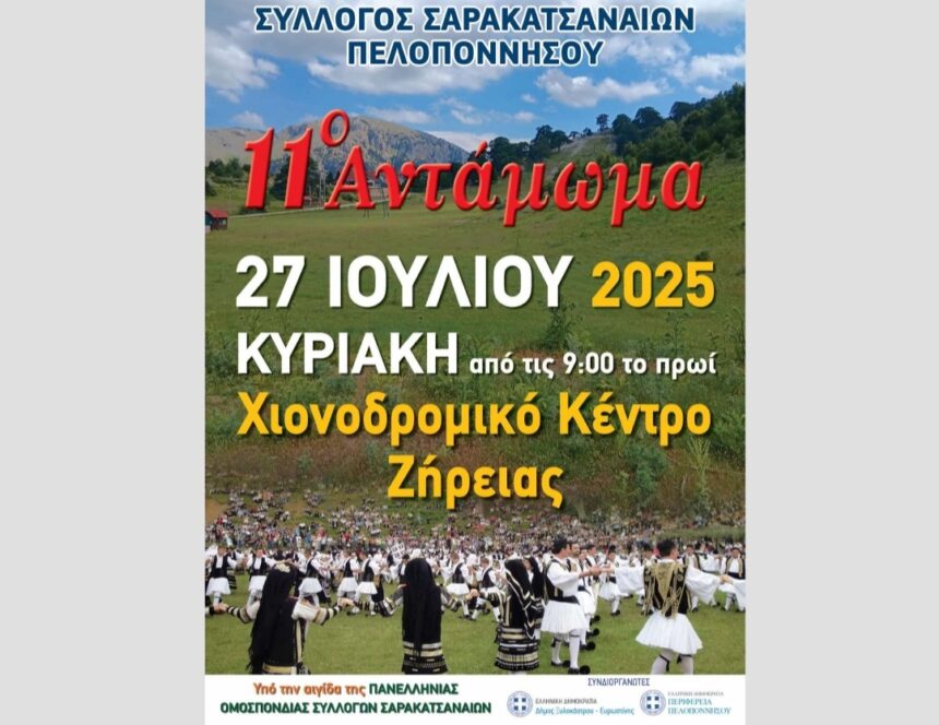Την Κυριακή 27-07-2025 στο Χιονοδρομικό Κέντρο Ζήρειας και από τις 9 π.μ. λαμβάνει χώρα το 11ο ετήσιο Αντάμωμα του Συλλόγου Σαρακατσαναίων Πελοποννήσου.