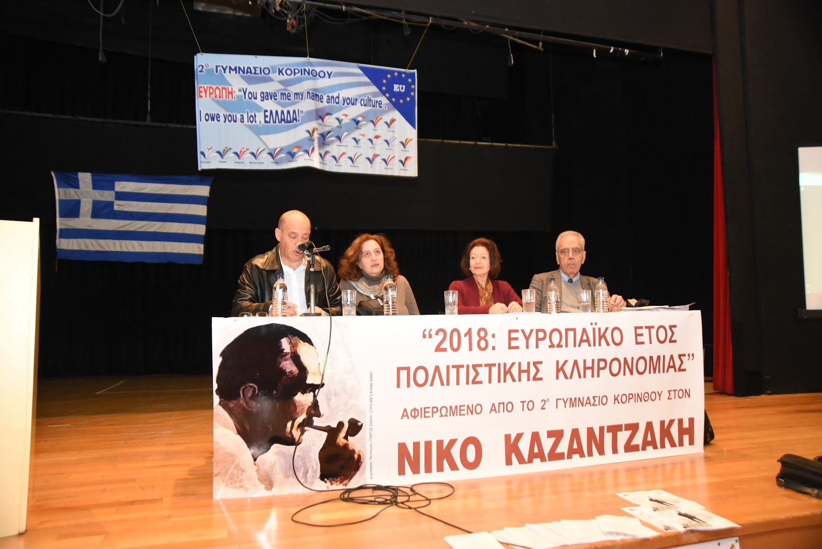 Η εκδήλωση εντάχθηκε στα πλαίσια της ανακήρυξης από την Ε.Ε. του 2018 ως «ΕΥΡΩΠΑΙΚΟ ΕΤΟΣ ΠΟΛΙΤΙΣΤΙΚΗΣ ΚΛΗΡΟΝΟΜΙΑΣ». Στην εκδήλωση την οποία παρακολούθησαν δεκάδες μαθητές από το 2ο Γυμνάσιο Κορίνθου αλλά και από άλλα σχολεία της Κορίνθου, μίλησαν με εξαιρετικό τρόπο, ο Πρόεδρος και Συντονιστής της ΔΕΦΝΚ κ. Στασινάκης Γιώργος ο οποίος αποτελεί και την «ψυχή» της Διεθνούς Εταιρείας, καθώς και η εξαίρετη κ. Rozmi Pahlisch – Τζάνου, Πρόεδρος του Παραρτήματος της ΔΕΦΝΚ Ελβετίας. Στην εκδήλωση απέδωσε τραγούδια με θεματολογία από το έργο του Καζαντζάκη η χορωδία του Μουσικού Γυμνασίου Κορίνθου με συνοδεία πιάνο και υπό την καθοδήγηση της Μουσικού κ. Γιαβρούμη Μαρίας, ενώ το 4ο Λύκειο παρουσίασε μια ποιητική δημιουργία με την ίδια θεματολογία και υπό την καθοδήγηση της Φιλολόγου κ. Χάψα Μαίρης. Στους επίσημους προσκεκλημένους οι οποίοι ταξίδεψαν από την Ελβετία ανταποκρινόμενοι στην Πρόσκληση του 2ου Γυμνασίου Κορίνθου, προσφέρθηκαν διάφορα δώρα, όπως κάδρα με γκραβούρες από κορινθιακά τοπία, βιβλία με τα αξιοθέατα αλλά και τους αρχαιολογικούς χώρους της Κορινθίας γραμμένα στα ελληνικά και αγγλικά, τον «Επιτάφιο του Περικλή» ο οποίος θεωρείται ο Ύμνος της Δημοκρατίας γραμμένος σε 4 γλώσσες και ο οποίος ήταν προσφορά της «ΒΟΥΛΗΣ των ΕΛΛΗΝΩΝ», πολυτελή στυλό, καθώς τοπικά προϊόντα, όπως λάδι συσκευασμένο σε πολυτελείς κασετίνες, κρασί κλπ. Μετά το πέρας της εκδήλωσης ακολούθησε ευχαριστήριο & αποχαιρετιστήριο τραπέζι.