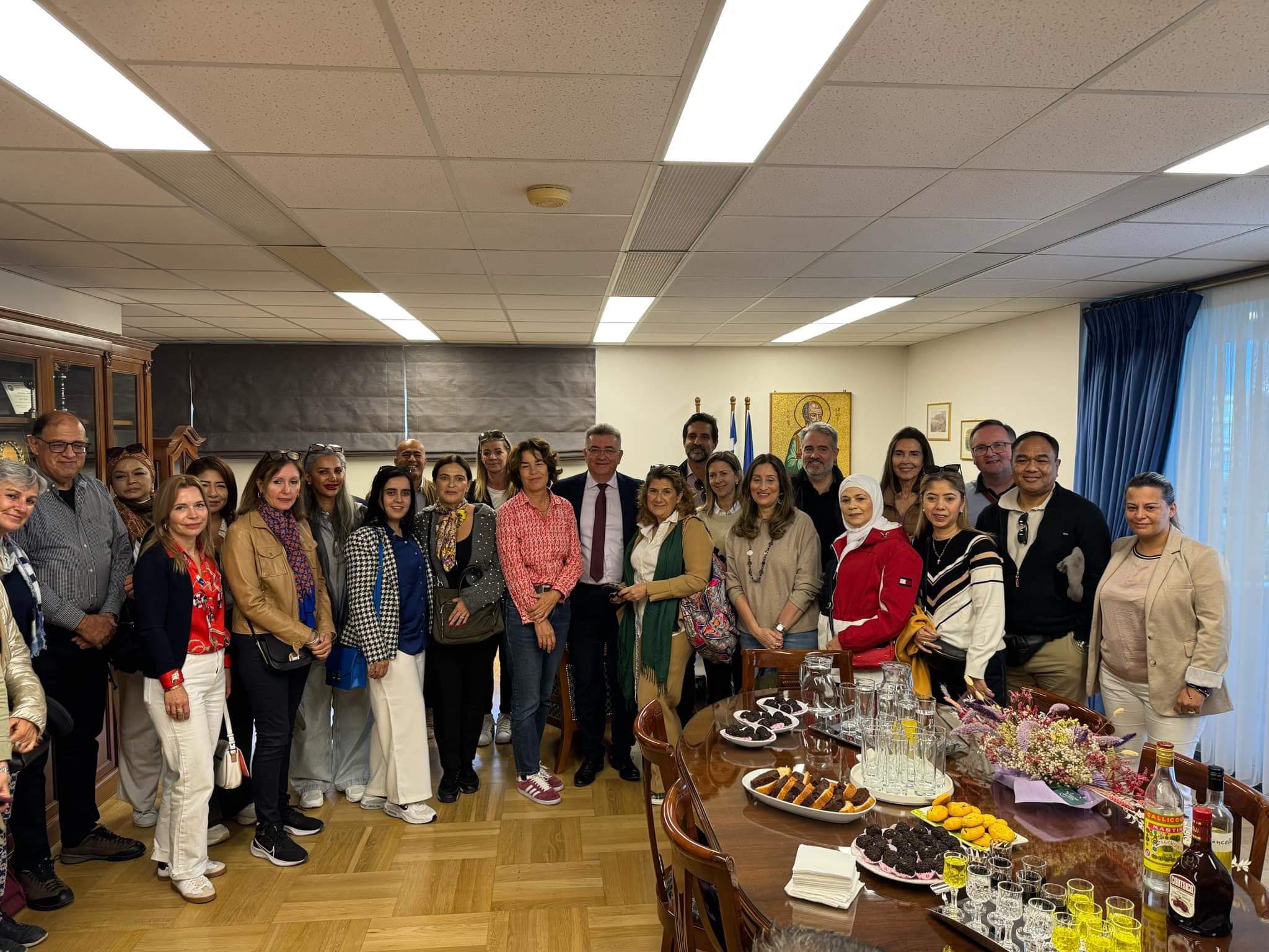 Το κλίμα ήταν ιδιαίτερα θερμό με τους επισκέπτες να δίνουν στον Δήμαρχο ως δώρο ένα καλάθι με παραδοσιακά προϊόντα από τους τόπους που προέρχονταν και να λαμβάνουν από τον κ. Σταυρέλη, ως αντίδωρο, αντίγραφα του Ναού του Απόλλωνα στην Αρχαία Κόρινθο και τοπικά προϊόντα.