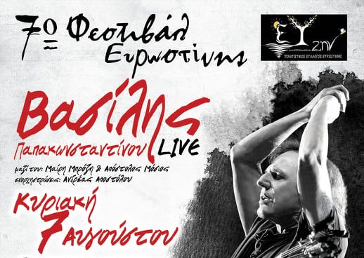 Την Κυριακή 7 Αυγούστου ο Βασίλης Παπακωνσταντίνου θα μας χαρίσει μια μοναδική συναυλία στο Δερβένι Κορινθίας (Προαύλιος Χώρος Λυκείου). Θα βουτήξει για χάρη μας στην ατέλειωτη δισκογραφία του και θα διαλέξει να μας τραγουδήσει τα «διαμάντια», τα τραγούδια «σταθμούς» και όλα τα αγαπημένα του/μας.