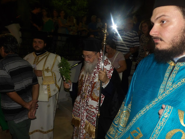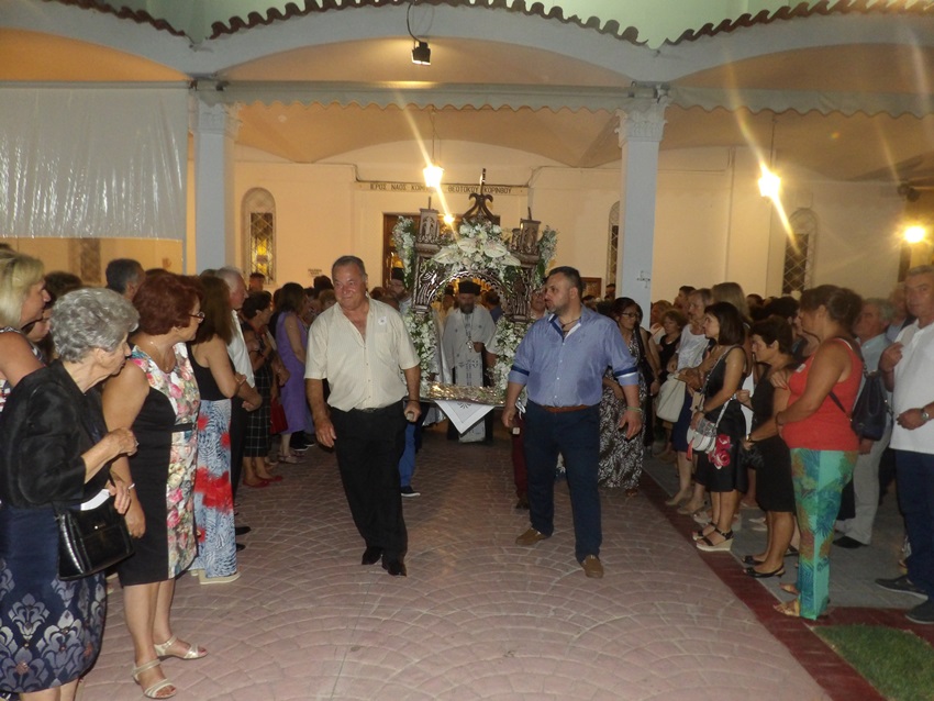 Την παραμονή της εορτής Τρίτη, 14 Αυγούστου 2018, ο Σεβ. Μητροπολίτης μας κ. Διονύσιος χοροστάτησε στον πανηγυρικό Εσπερινό στην Ενορία της Κοιμήσεως της Θεοτόκου Ιωνίας (Συνοικισμού) Κορίνθου. Τον Σεβ. Ποιμενάρχη μας πλαισίωσαν Κληρικοί της πόλεως της Κορίνθου. Αφού έψαλαν τα Εγκώμια στην Υπεραγία Θεοτόκο ακολούθησε η Ι. Λιτανεία του Επιταφίου στους δρόμους του Συνοικισμού. Λίγο πριν την απόλυση της Ι. Ακολουθίας ο Σεβ. Μητροπολίτης μας, παρουσία των πολιτικών εκπροσώπων και των ευσεβών Χριστιανών, αναφέρθηκε στα ιστορικά γεγονότα του ξεριζωμού των κατοίκων της Σμύρνης και της Μ. Ασίας γενικότερα, τονίζοντας ότι, παρά τις δυσκολίες και τις κακουχίες που αντιμετώπισαν τότε, δεν έπαψαν να εναποθέτουν τις ελπίδες τους στην Θεοτόκο, γιατί γνώριζαν ότι η Παναγία μας είναι η μόνη που μπορεί να τους προστατεύει αλλά και να τους μεταφέρει από την γη στον ουρανό, ενώ κατέληξε στο συμπέρασμα ότι, και στις μέρες μας, οι Χριστιανοί έχοντας την Παναγία μας στήριγμα ξέρουμε να παλεύουμε και να ξεπερνάμε κάθε δυσκολία. Ολοκλήρωσε τον λόγο του καλώντας τους πιστούς να αναπέμψουν θερμές προσευχές προς την Υπεραγία Θεοτόκο ώστε να πάψουν οι πυρκαϊές, που ταλαιπωρούν την Πατρίδα μας, ενώ έψαλαν το «τη Υπερμάχω» ως ευχαριστία για την απελευθέρωση των δύο Αξιωματικών του Ελληνικού Στρατού από τις Τουρκικές Φυλακές.