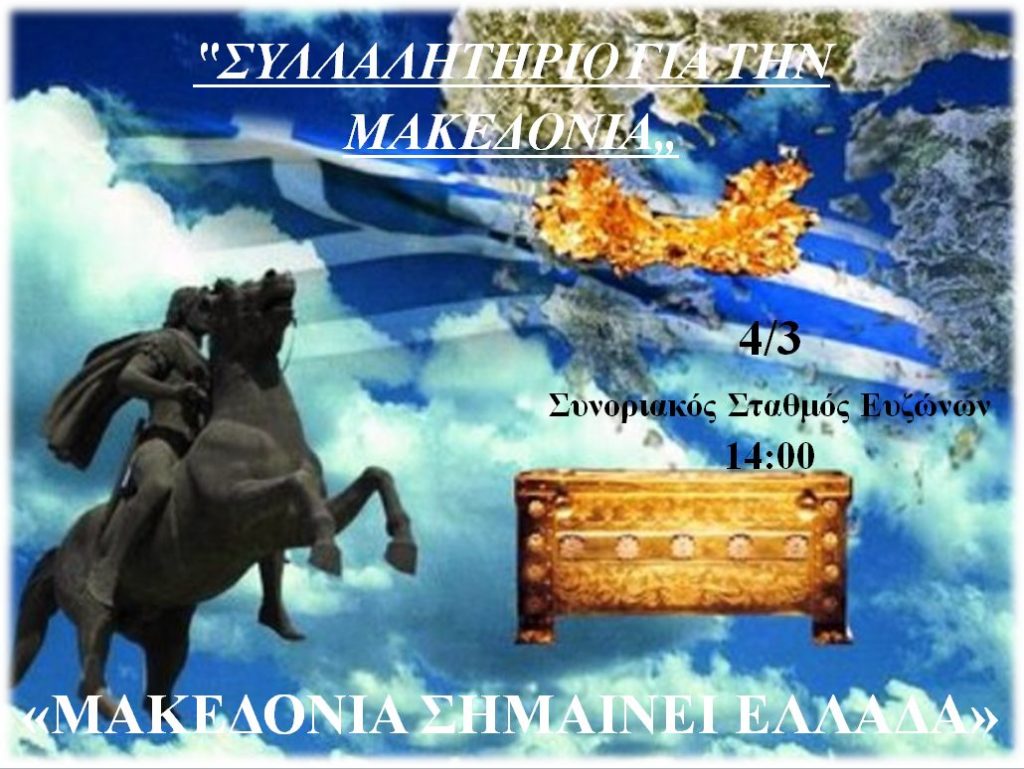 Μετά τα συλλαλητήρια για τη Μακεδονία στη Θεσσαλονίκη και την Αθήνα, σειρά παίρνει η Πάτρα αλλά θα υπάρξει και συνέχεια. Όπως ανακοινώθηκε στις 4 Μαρτίου θα γινει συλλαλητήριο και στον συνοριακό σταθμό των Ευζώνων στο Κιλκίς. Μάλιστα όπως αναφέρουν οι διοργανωτές «κλείδωσαν» τη συγκεκριμένη ημερομηνία μετά από απαίτηση χιλιάδων διαδηλωτών.