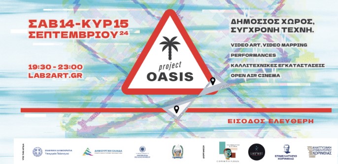 Το Project Oasis πραγµατοποιείται στα πλαίσια του πρώτου πολυθεµατικού Φεστιβάλ Κορινθίας, που διοργανώνει το Επιµελητήριο Κορινθίας, η Περιφέρεια Πελοποννήσου και ο Δήµος Κορίνθου και την επιµέλεια έχει ο αρχιµουσικός Πελοπίδας Μαυρόπουλος. Διοργάνωση και καλλιτεχνική επιµέλεια project Oasis: Lab2Art / Δίολκοι.