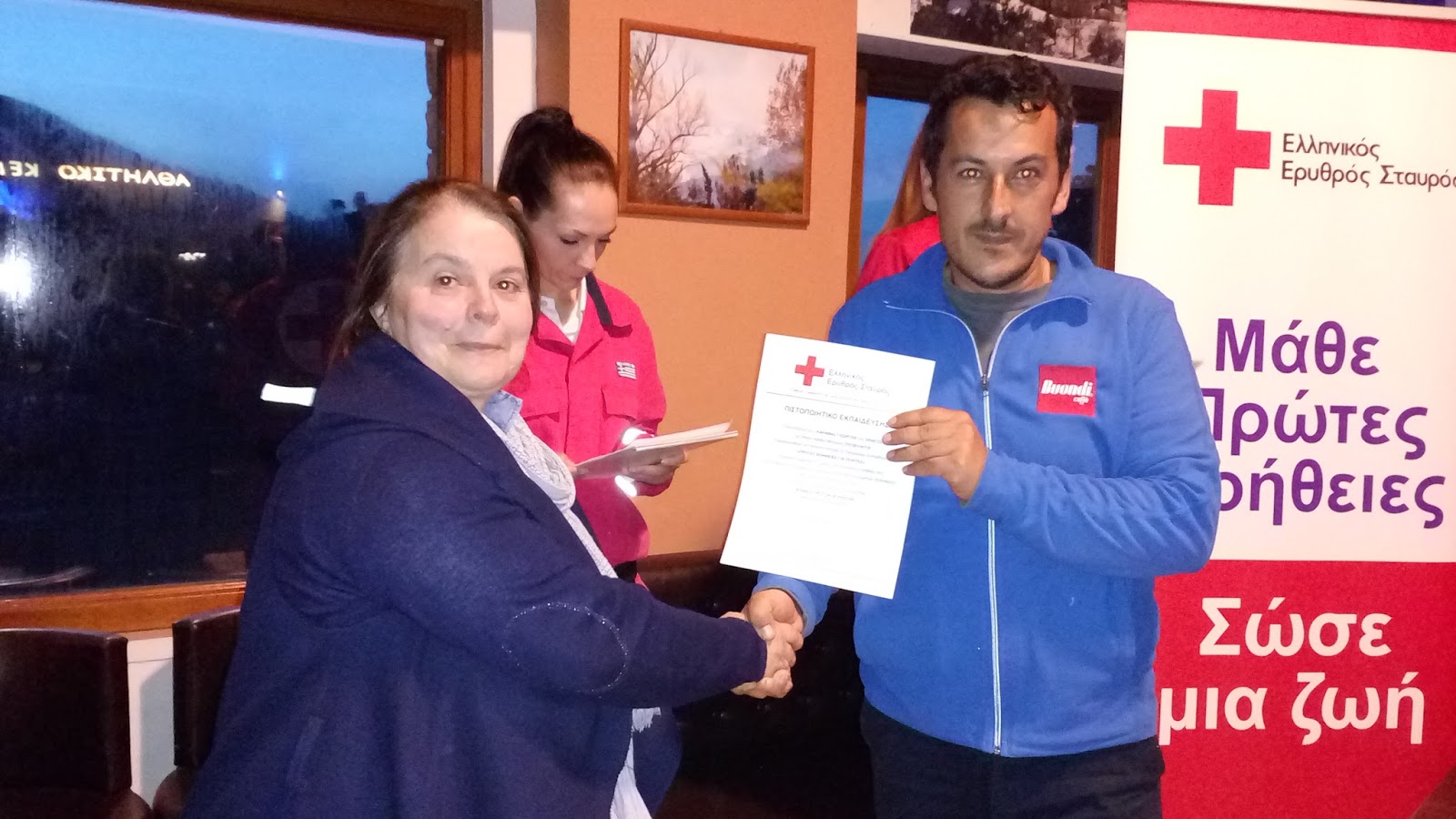 του κέντρου ως και ενεργών πολιτών της περιοχής από υψηλού επιπέδου κλιμάκιο εκπαιδευτών του Ε.Ε.Σ. Ακολούθησε σεμνή τελετή παράδοσης των σχετικών πτυχίων και διαπίστευσης του κέντρου.