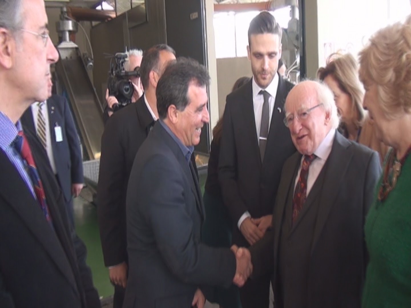 Tην πρότυπη μονάδα επεξεργασία ελαιοκάρπου και παραγωγή έξτρα παρθένου ελαιολάδου, Αφοι Νικολάου Μάρκελλου στο Γαλατάκι Κορινθίας επισκέφθηκε ο πρόεδρος της Ιρλανδίας, Μάικλ Ντ. Χίγκινς.
